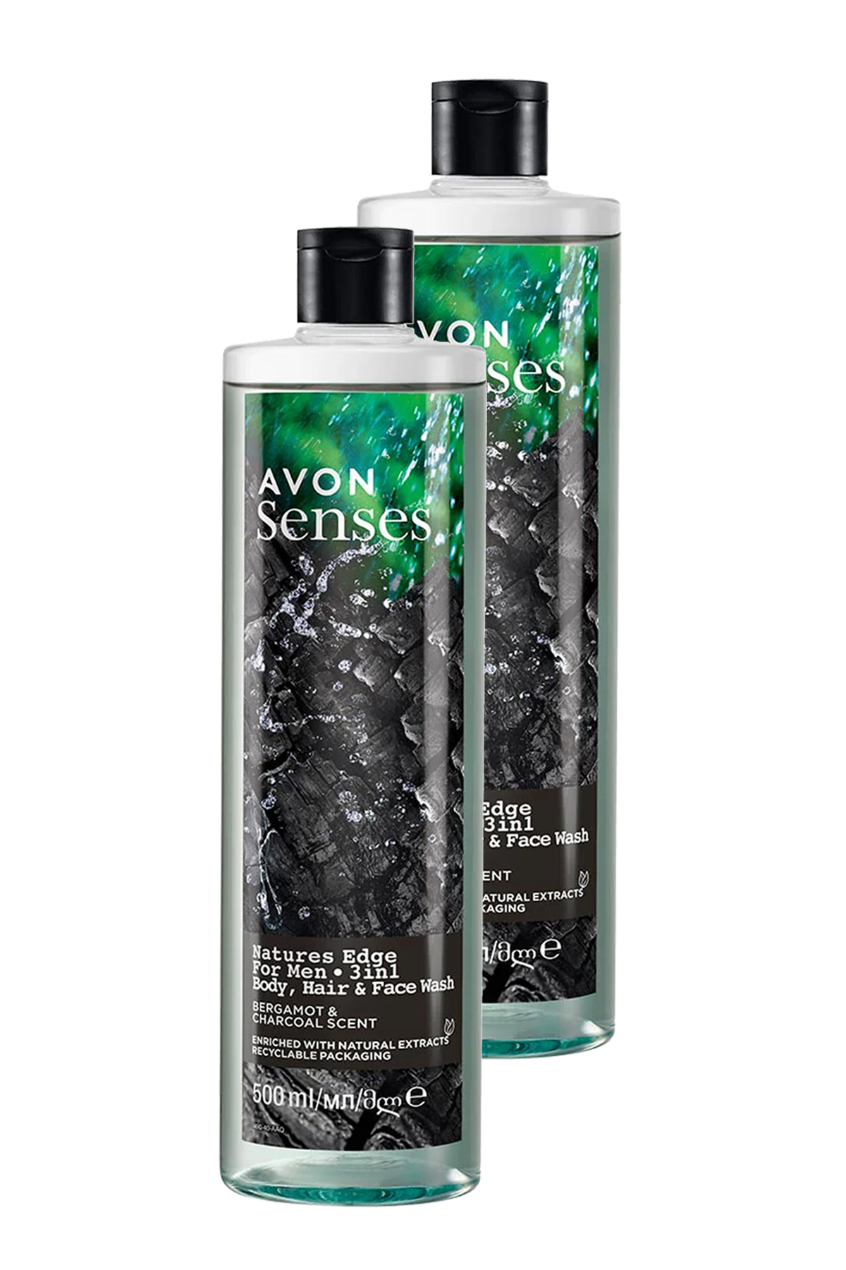 Avon Senses Natures Edge Men's Hair Body and Face Wash 500 Ml. Duo Set