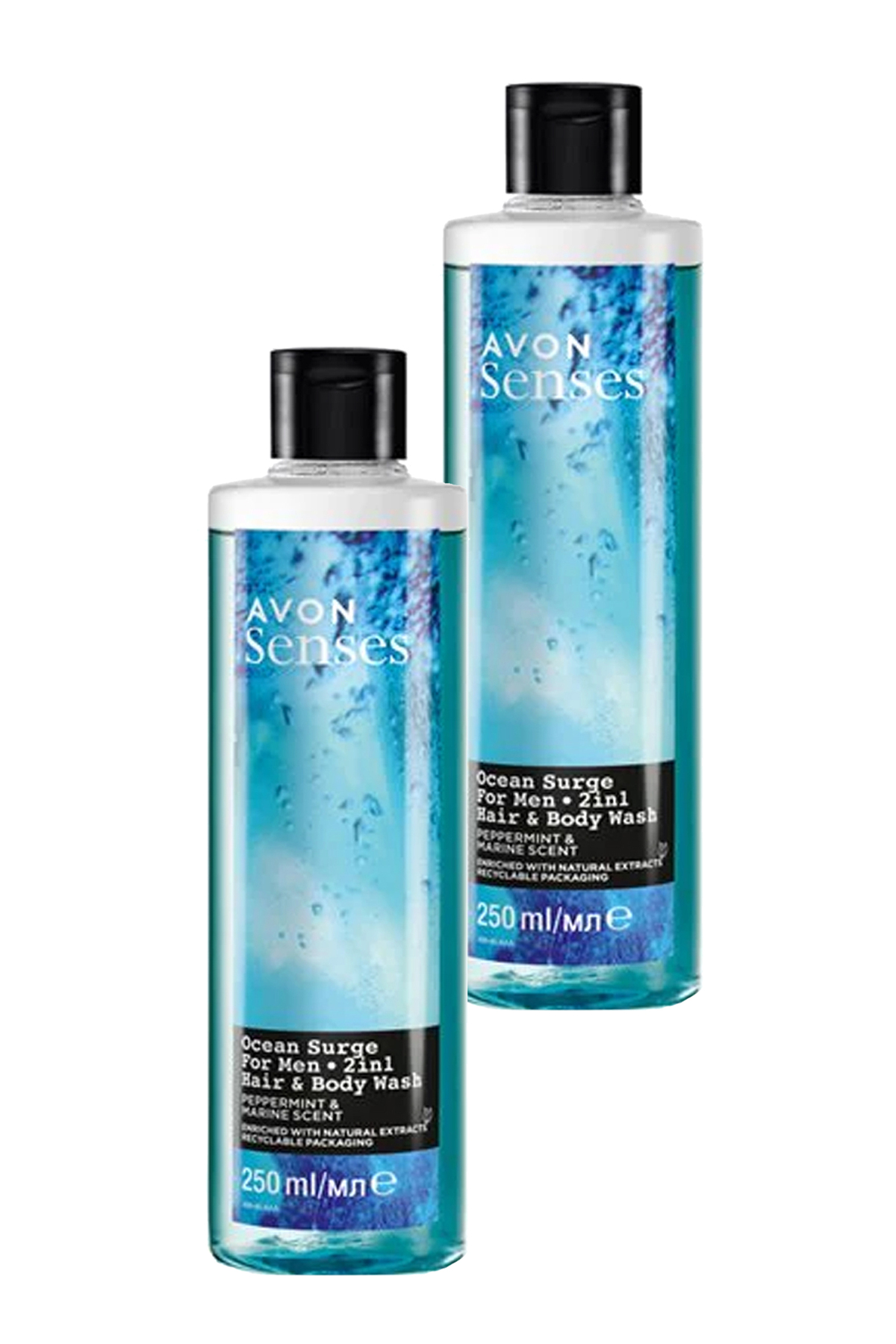 Avon Senses Ocean Surge Mint and Sea Scented Hair and Body Shower Gel for Men 250 Ml. Set of Two