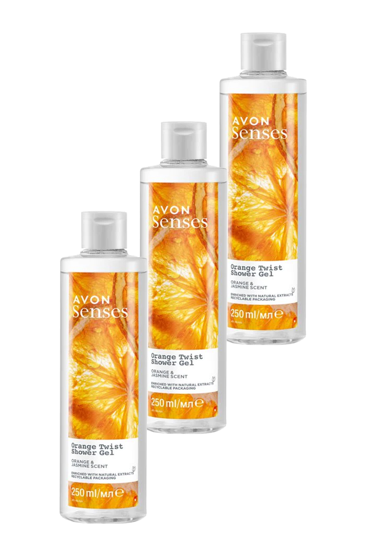 Avon Senses Orange Twist Orange and Jasmine Scented Shower Gel 250 Ml. Triple Set