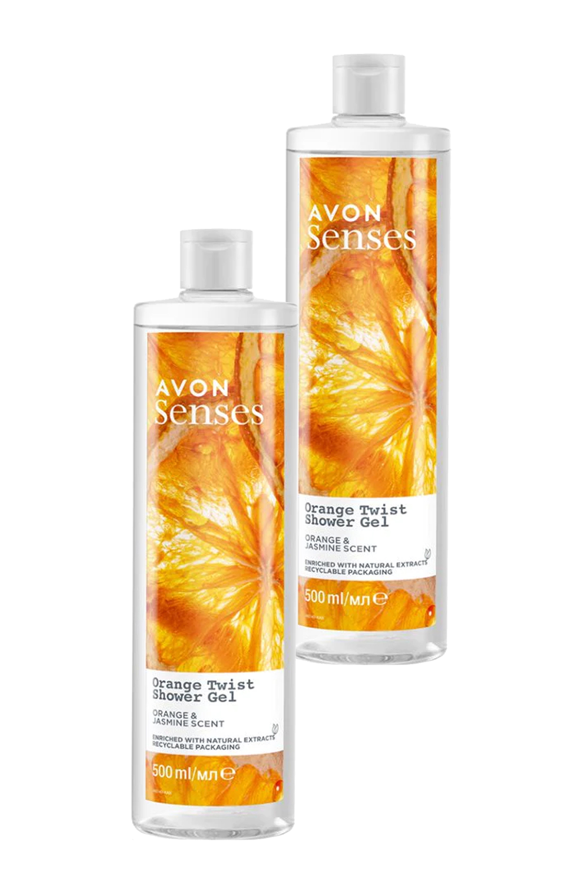 Avon Senses Orange Twist Orange and Jasmine Scented Shower Gel 500 Ml. Set of Two