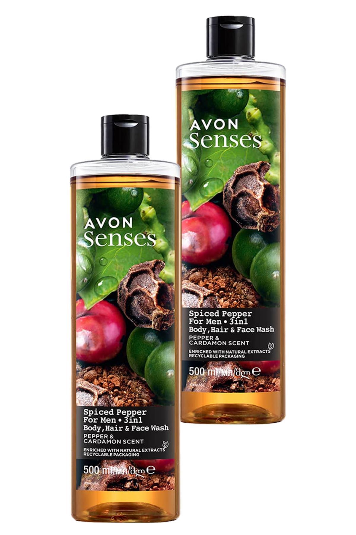 Avon Senses Spiced Pepper Black Pepper and Cardamom Scented Shower Gel for Men 500 Ml. Set of Two