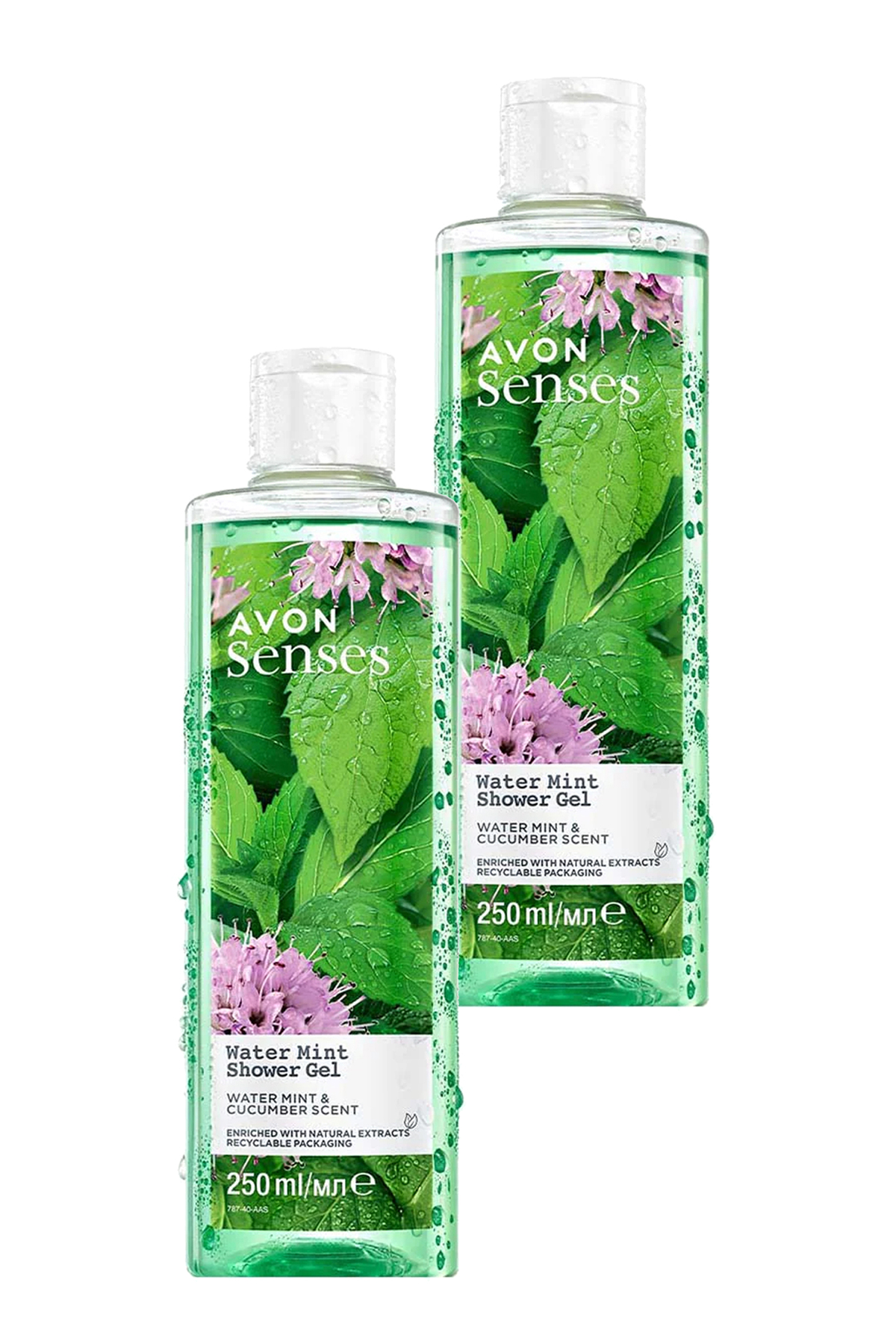 Avon Senses Water Mint Mint and Cucumber Scented Shower Gel 250 Ml. Set of Two