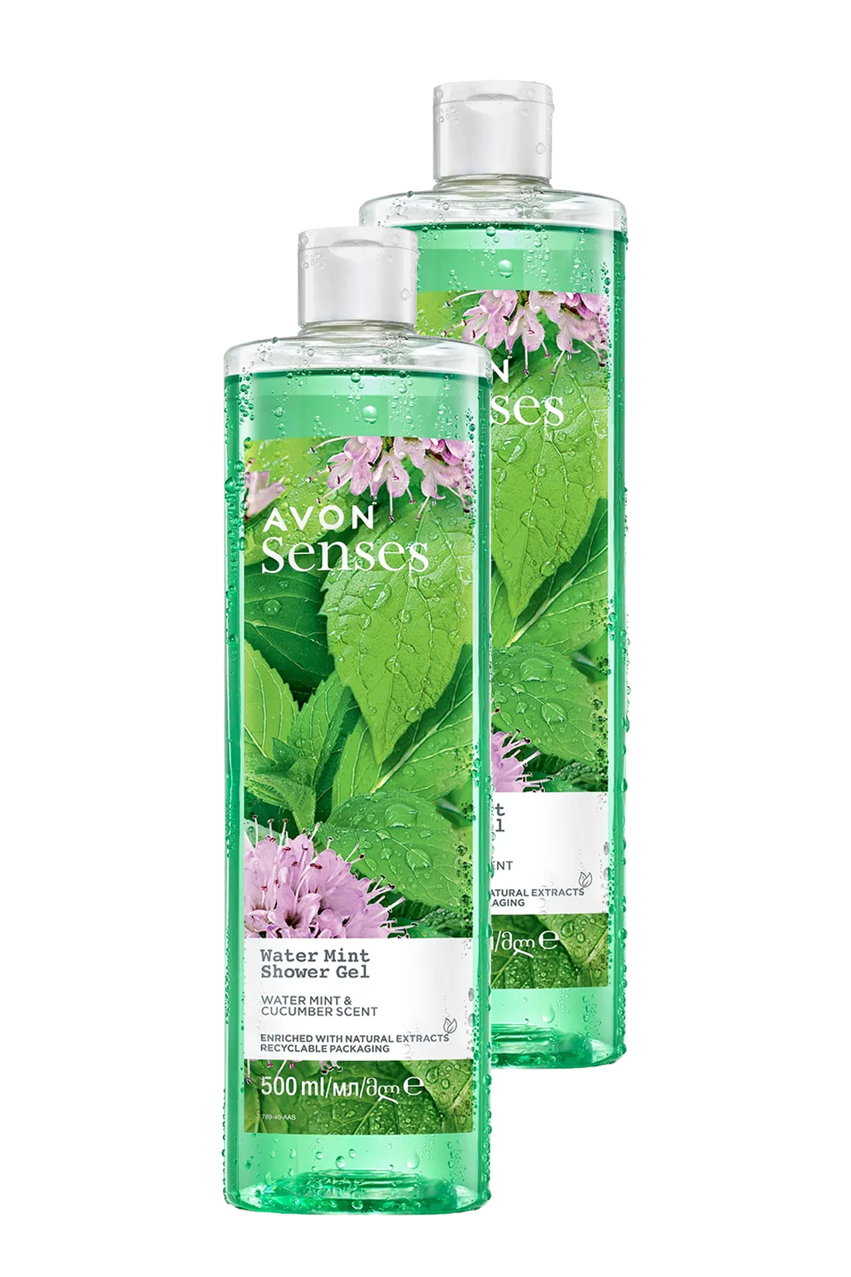 Avon Senses Water Mint Mint and Cucumber Scented Shower Gel 500 Ml. Set of Two