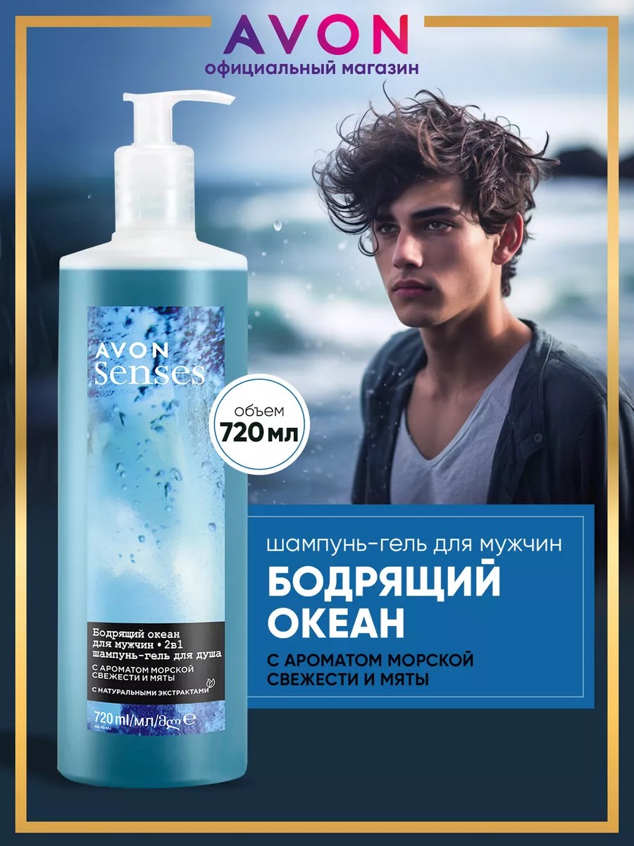 AVON Шампунь - гель для душа мужской Бодрящий океан 720 мл