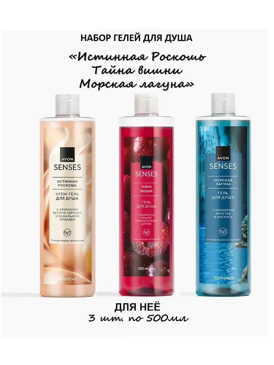 Путешествие в мир ароматов и заботы о коже. Набор гелей для душа Senses – это не просто средство для очищения, это приглашение в мир ароматов, релакса и заботы о коже. Каждая бутылочка, объемом 500 мл, представляет собой уникальную формулу, которая не только освежает и очищает, но и дарит коже нежность, питание и глубокое увлажнение. В наборе вы найдете 3 вида геля для душа, каждый из которых обладает своим неповторимым ароматом и свойствами. Этот гель - настоящий подарок для вашей кожи. Интенсивно увлажняя и питая, он делает ее нежной и гладкой, подобно шелку. Он прекрасно заменяет мыло, помогает снять стресс после тяжелого дня и погрузиться в приятные ощущения. Набор гелей для душа Senses - это универсальное средство, которое подходит для всех: Для мужчин и женщин. Преимущества набора гелей для душа Senses: Увлажнение и питание. Гели обеспечивают глубокое увлажнение и питание кожи, делая ее мягкой, гладкой и эластичной. Очищение и свежесть: Гели эффективно очищают кожу от загрязнений и избытка кожного жира, оставляя ощущение свежести и чистоты. Ароматерапия: Каждый гель обладает своим уникальным ароматом, который помогает снять стресс, успокоиться и расслабиться. Универсальность: Набор подходит для всех типов кожи и может использоваться как в домашних условиях, так и в путешествии. Идеальный подарок: Набор гелей для душа Senses - это отличный подарок для любого повода. С набором гелей для душа Senses вы сможете превратить процесс купания в истинное удовольствие!