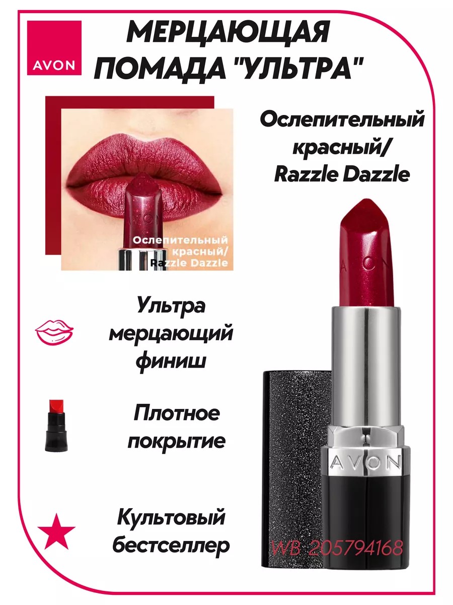 AVON Мерцающая губная помада "Ультра" Осл. красный Razzle Dazzle