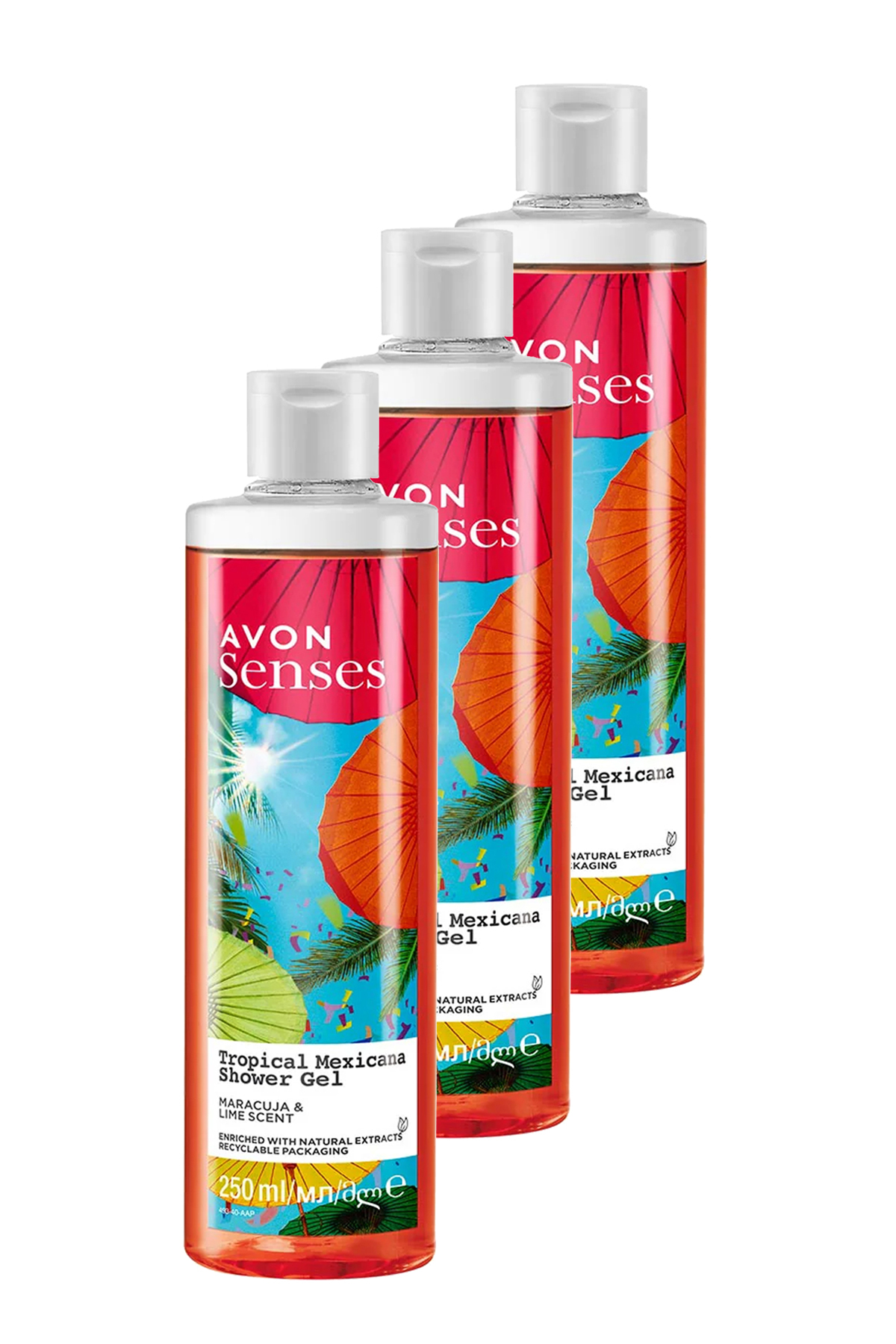 Avon Tropical Mexicana Passion Fruit and Lemon Scented Shower Gel 250 Ml. Set of Three