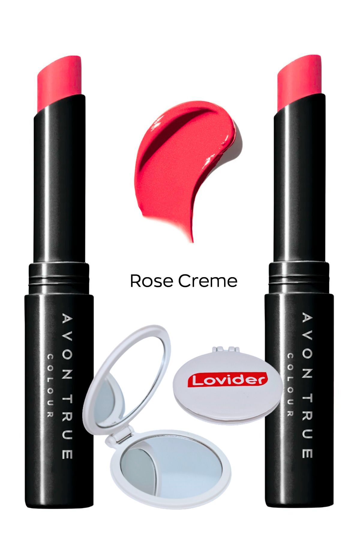 Avon True Color Ultra Beauty Lipstick - Rose Creme 2 Pack + Lovider Pocket Mirror Gift