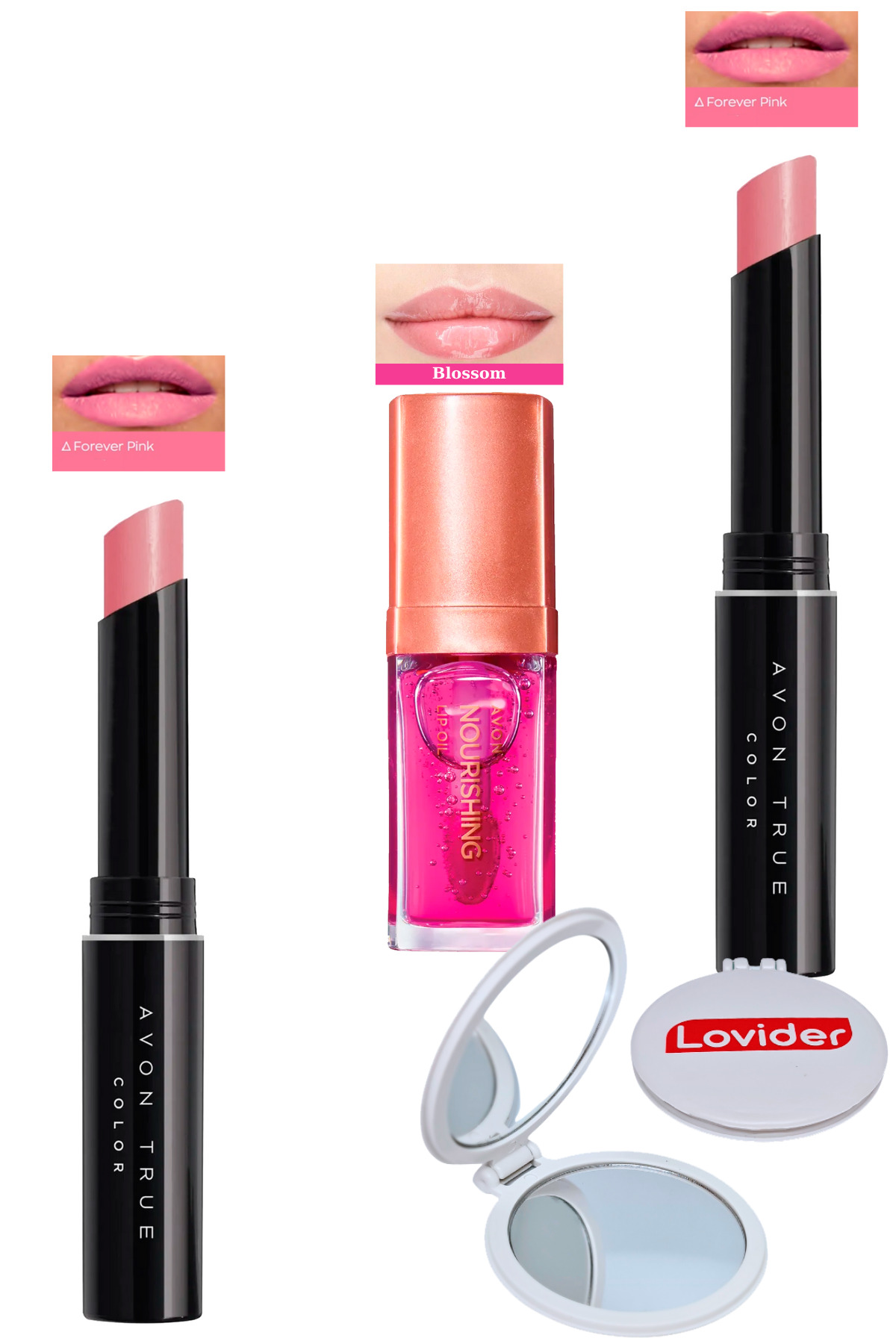Avon Ultra Beauty Lipstick Forever Pink 2 Pack + Blossom Lip Care Oil + Pocket Mirror