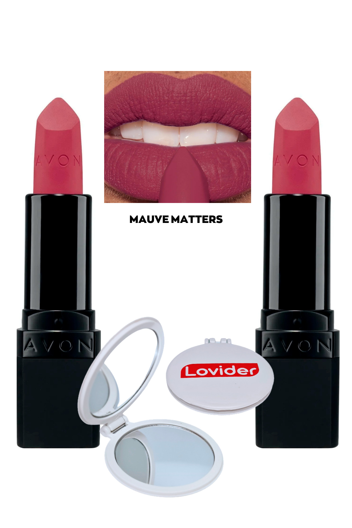 Avon Ultra Matte Lipstick Mauve Matters 2 Pack + Lovider Pocket Mirror