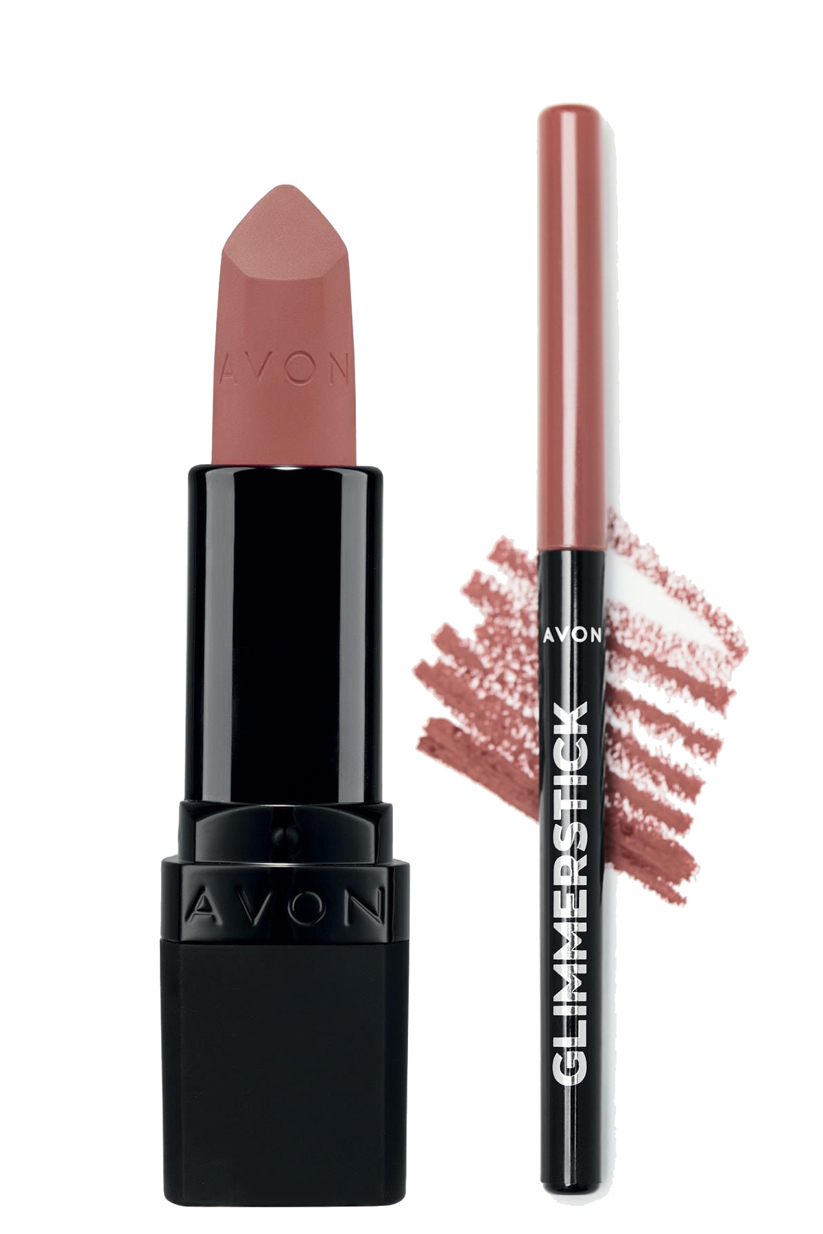 Avon Ultra Matte Lipstick Nude Suede and Glimmerstick Lip Pencil Blushed Nude Bundle