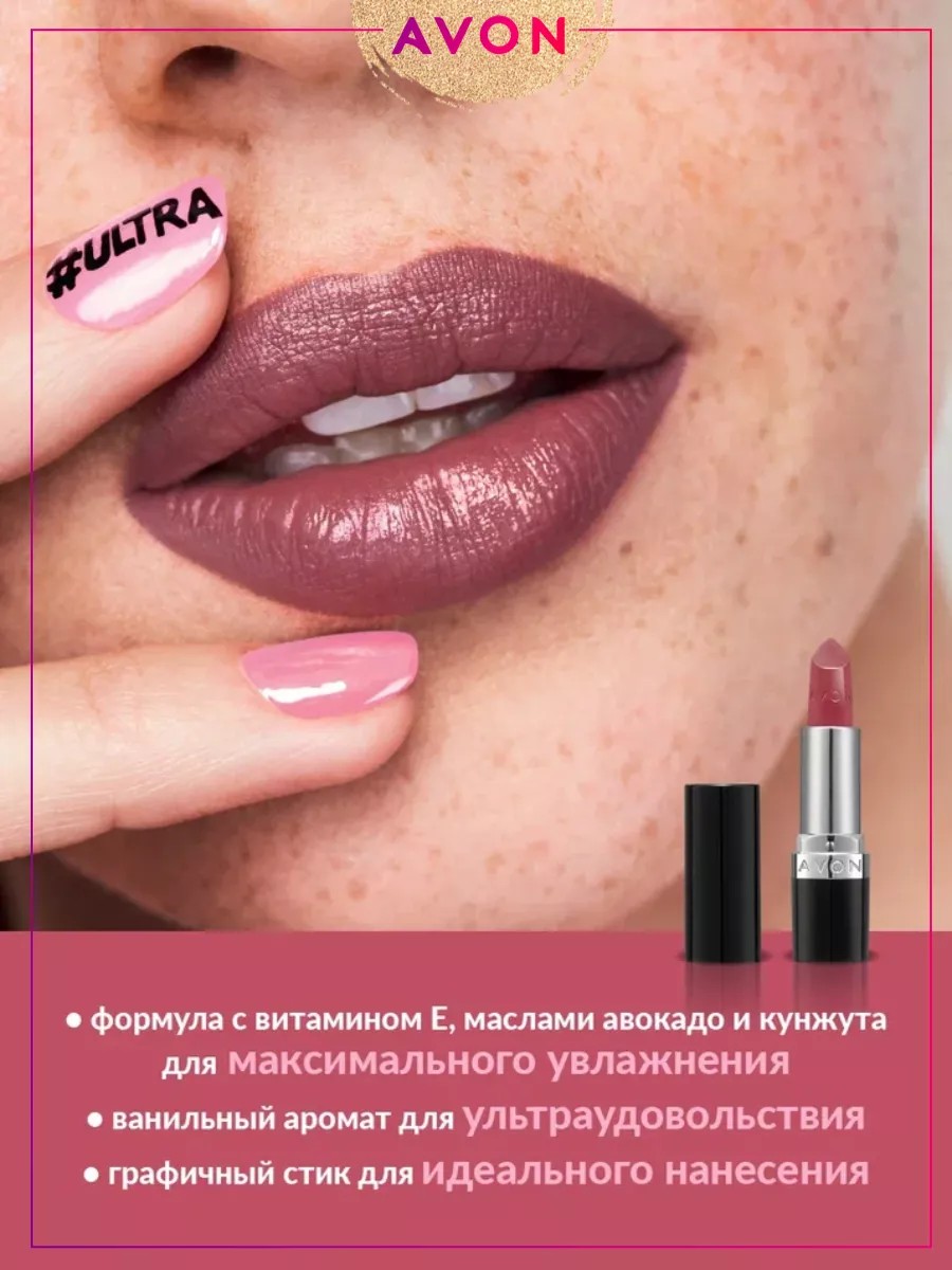 Губная помада Помада для губ Эйвон кремовая для макияжа декоративная косметика женская. Помада линейки Ультра - большой выбор оттенков, среди которых вы обязательно найдете свой. Сдержанные нюдовые тона, от коричневого до медного тона, а может быть, яркие розовые или красные? Все зависит от вашего настроения. В отличие от жидких помад, для ее нанесения не потребуется кисть, что крайне удобно. Помада в стике легко наносится, оставляя после себя мягкое глянцевое покрытие и насыщенный цвет. Она не сушит, не подчеркивает мелкие шелушения, отлично держится на губах, увлажняя и ухаживая за ними. Качественная альтернатива мегапопулярной помадам из раздела корейская косметика и белорусским производителям. Выберете свой оттенок или несколько - на каждый день и для особенного случая
