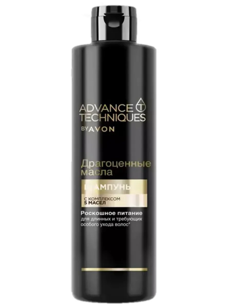 Шампунь от Avon Драгоценные масла оказывает отличный уход за волосами. Женский уход для волос включает в себя комплекс NUTRI 5- это пять драгоценных масел: макадамия придает питание и эластичность, Марула увлажняет и разглаживает, Камелия придает сияние и обеспечивает легкое расчесывание, Миндаль укрепленяет и восстанавливает, а Виноград защищает от агрессивных факторов окружающей среды. Профессиональный шампунь от Эйвон благодаря собранному комплексу масел является альтернативой салонному уходу и подходит для всех типов волос. Шампунь мягко очищает и питает, не утяжеляя волосы, интенсивно регенерируя их, глубоко увлажняет и наполняет энергией. Косметика для волос Драгоценные масла не вызывают привыкания. Роскошный увлажняющий питательный шампунь подходит блондинкам, брюнеткам и рыжим. А также всем, у кого прямые, волнистые, вьющиеся и мелкие плотные кудри. Используя шампунь от эйвонмДрагоценные масла каждый день, вы быстро увидите результат. Волосы станут сильными, крепкими, эластичными, что помогает им выдерживать различные виды укладки. Дизайн флакона идеально подойдет для вашей ванной комнаты. Не тестируется на животных.