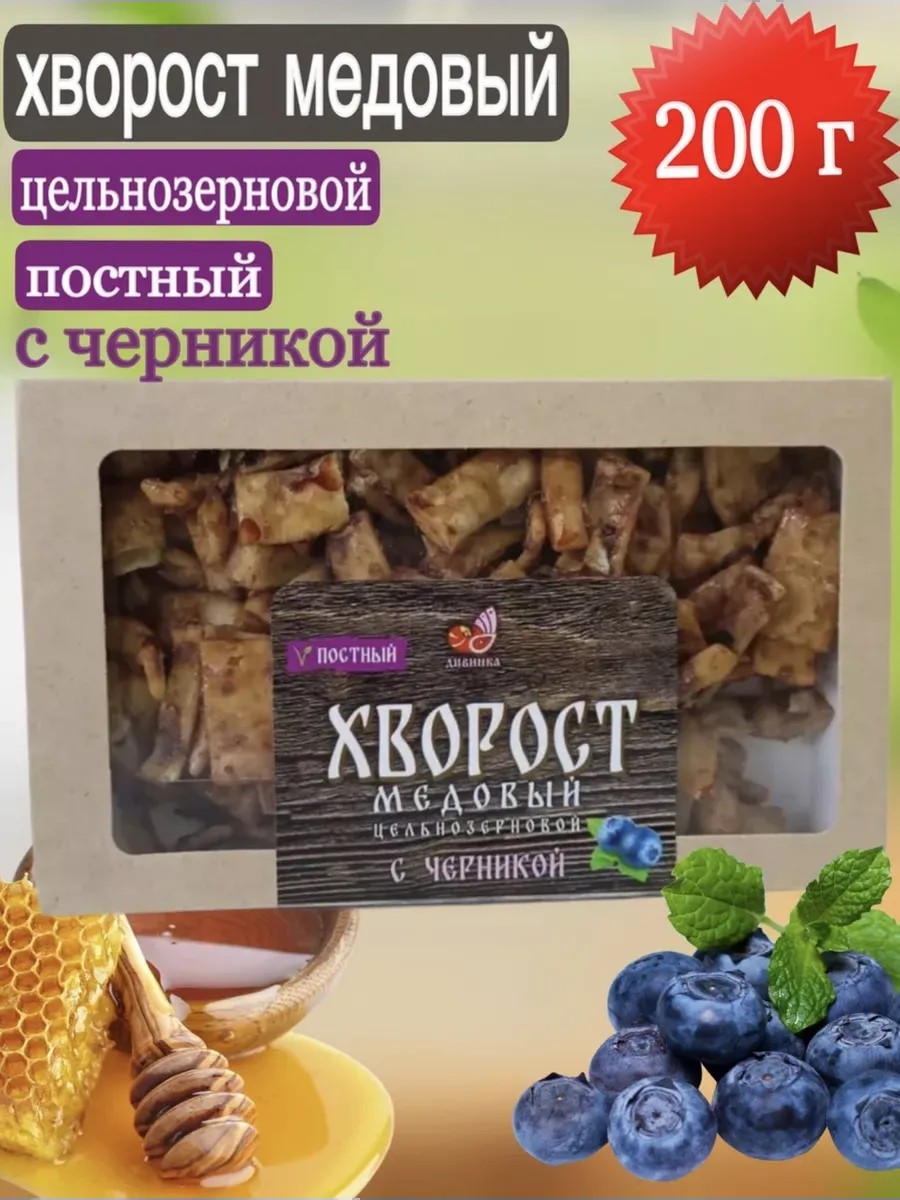 Made from ALTAI WHOLE GRAIN flour with natural honey and blueberries. NO ENHANCERS. Natural vitamins, minerals, macro- and microelements are preserved. Glaze: natural honey (heated to 30°C), crushed blueberries. NO COLORS OR FLAVORS. In Rus', blueberries were said to protect against all kinds of illnesses, relieve stomach ailments, heal the liver and kidneys, clear the head, and purify the blood. In modern medicine, they are used to improve visual acuity, as an anti-inflammatory and anti-anemic agent. And honey will help you calm and relax and nourish the body with an incredible amount of natural vitamins and microelements. Wholegrain flour is a biologically active product. It retains bran, vitamins, minerals, micro- and macroelements. Bran quickly induces a feeling of satiety, acts as an absorbent, and removes harmful substances from the body. Healthy eating products without GMOs, flavor enhancers, or preservatives. LENTEN PRODUCT.