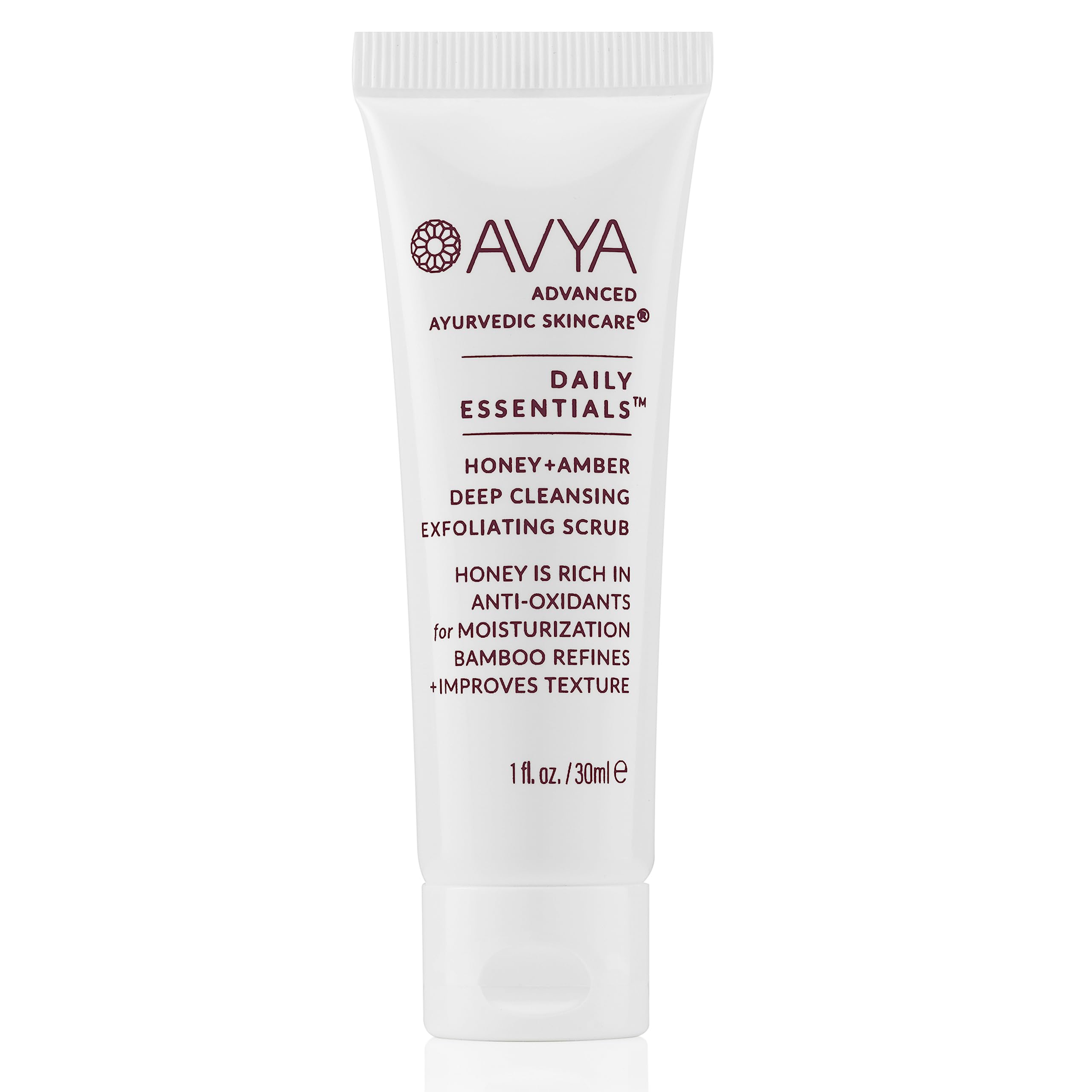 AVYA Honey + Amber Exfoliating Scrub (Travel Size - 1 fl oz) - Deep Cleansing with Honey's Antioxidant Power and Bamboo for Refined Texture and Intense Moisturization 1 Fl Oz (Pack of 1)
