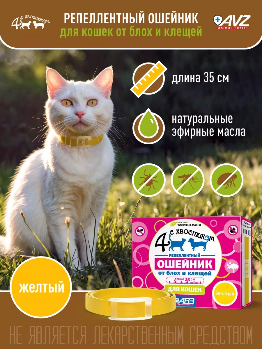 АВЗ Ошейник от блох и клещей 35 см для кошек жёлтый