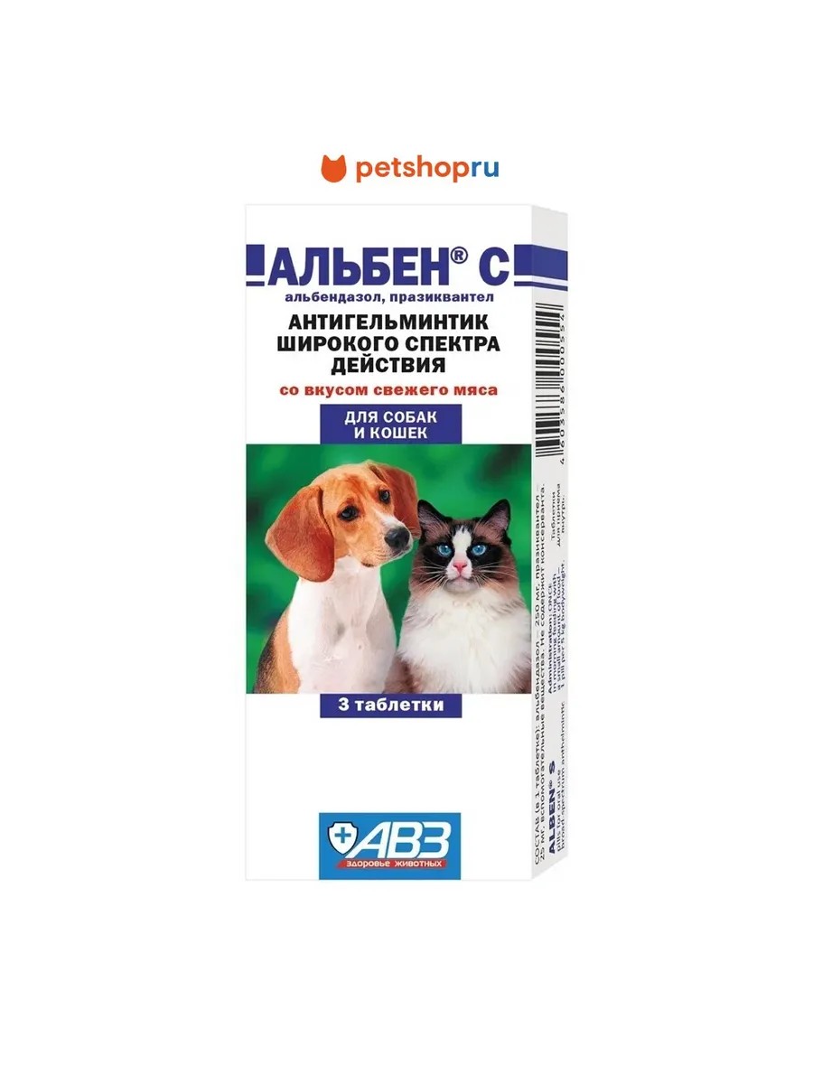 АВЗ Альбен С Таблетки от глистов для собак и кошек, 3 таб