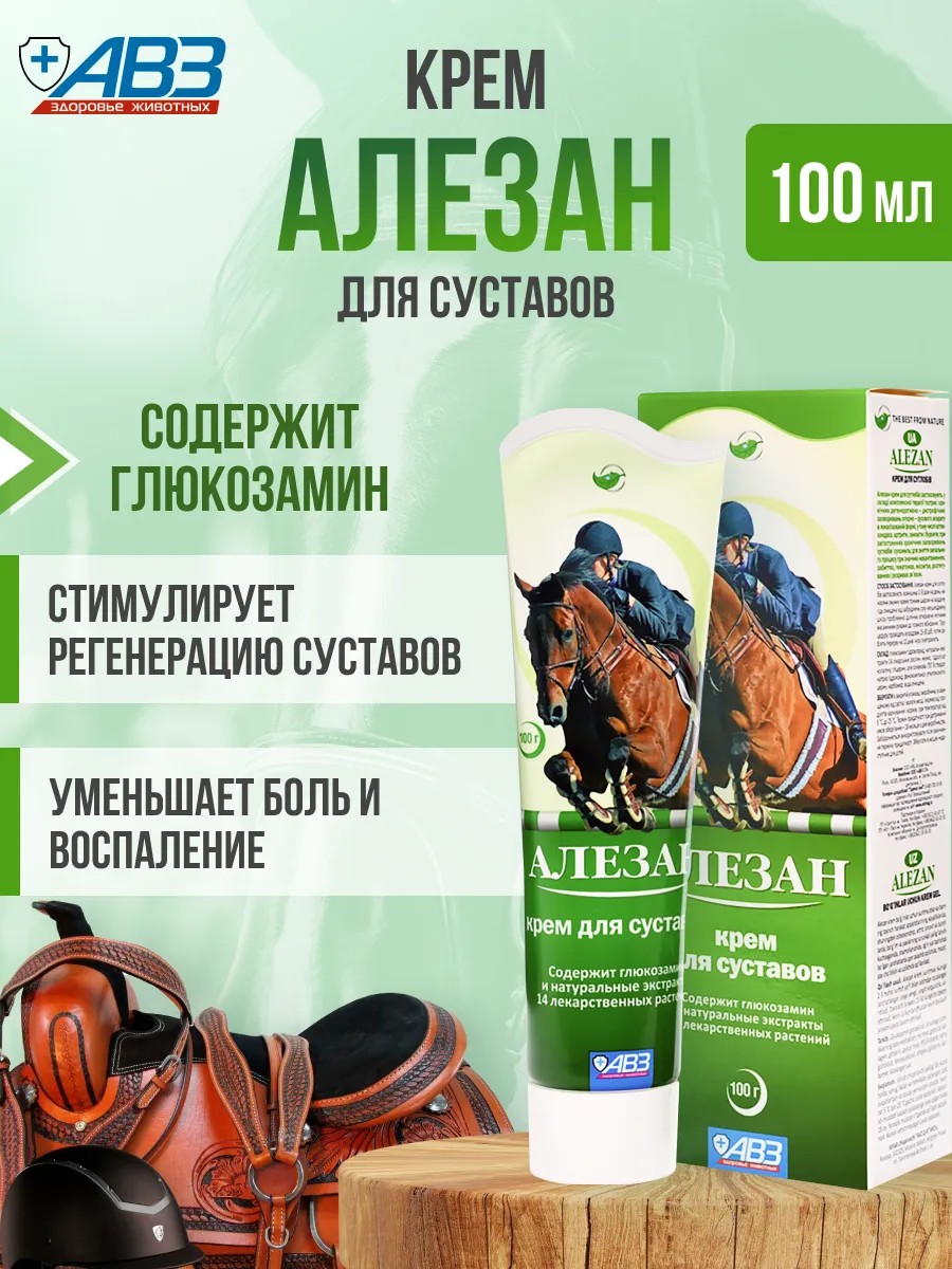 Алезан крем для суставов применяют лошадям и собакам в составе комплексной терапии острых и хронических дегенеративно-дистрофических заболеваний опорно-двигательного аппарата локализованной формы, в том числе остеохондроз, артриты, синовиты и бурситы, при обострениях хронических заболеваний суставов и сухожилий, для снятия воспалительного процесса при значительных нагрузках, ушибах, гематомах, миозитах, растяжениях и разрывах связок. Противопоказанием к применению является повышенная индивидуальная чувствительность животного к компонентам лекарственного препарата. Не следует наносить лекарственный препарат на поврежденную кожу и слизистые оболочки.