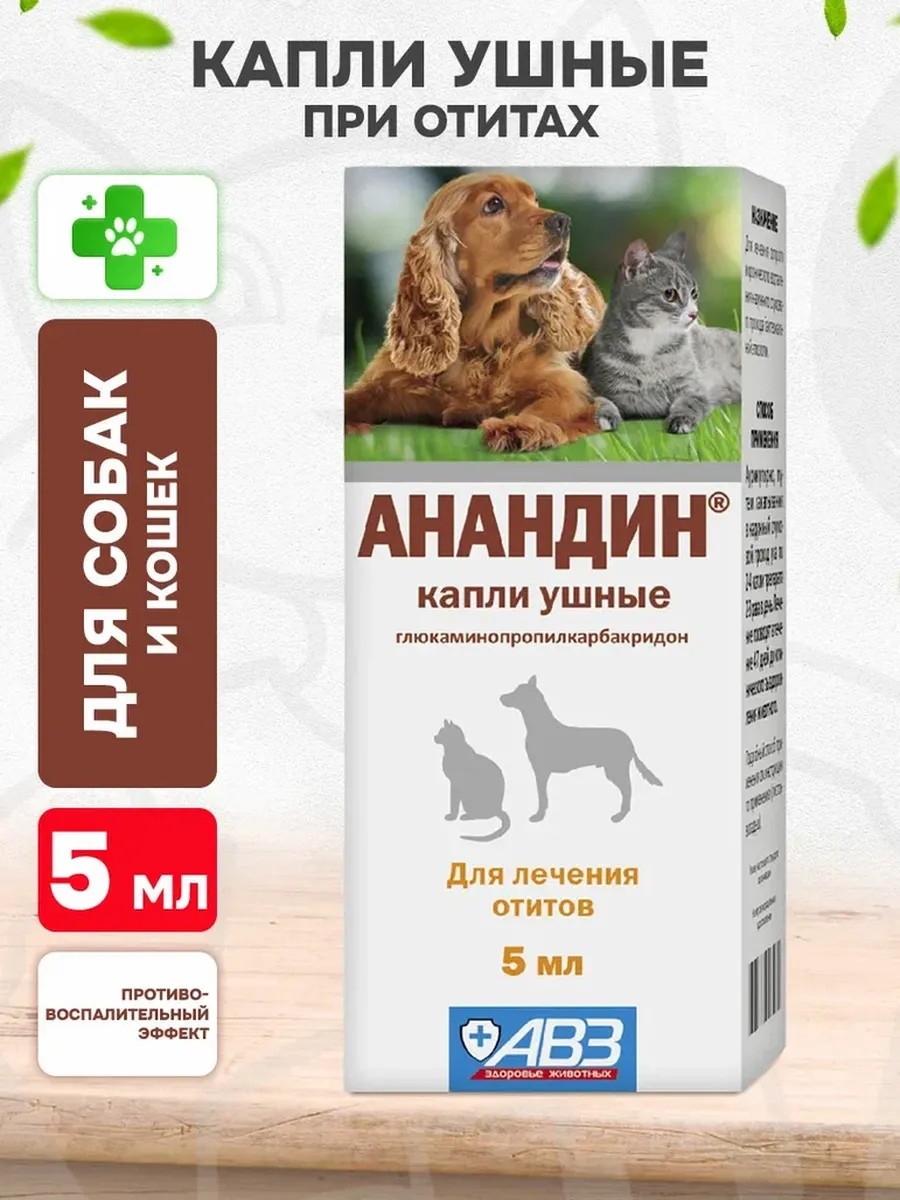 Anandin ear drops are used to treat dogs and cats with otitis of various etiologies, including acute, chronic and traumatic, as well as those complicated by infectious diseases.