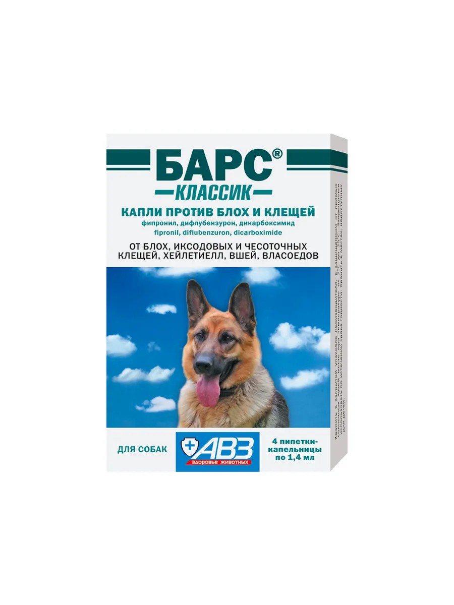 АВЗ БАРС капли для собак 4 пипетки по 1.4 мл
