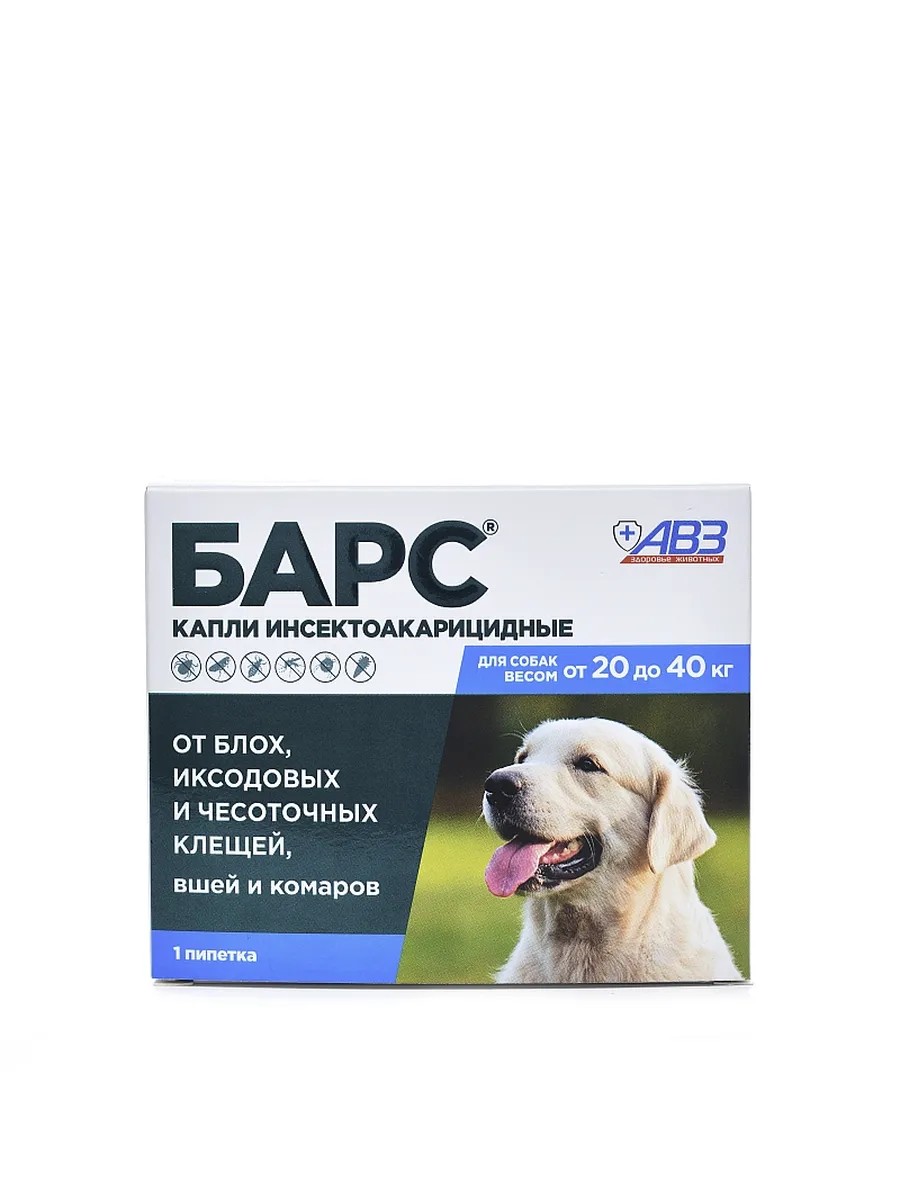 | Полное наименование товара | БАРС капли для собак от 20 до 40 кг от блох и клещей 1 пипетка*2,68 мл |