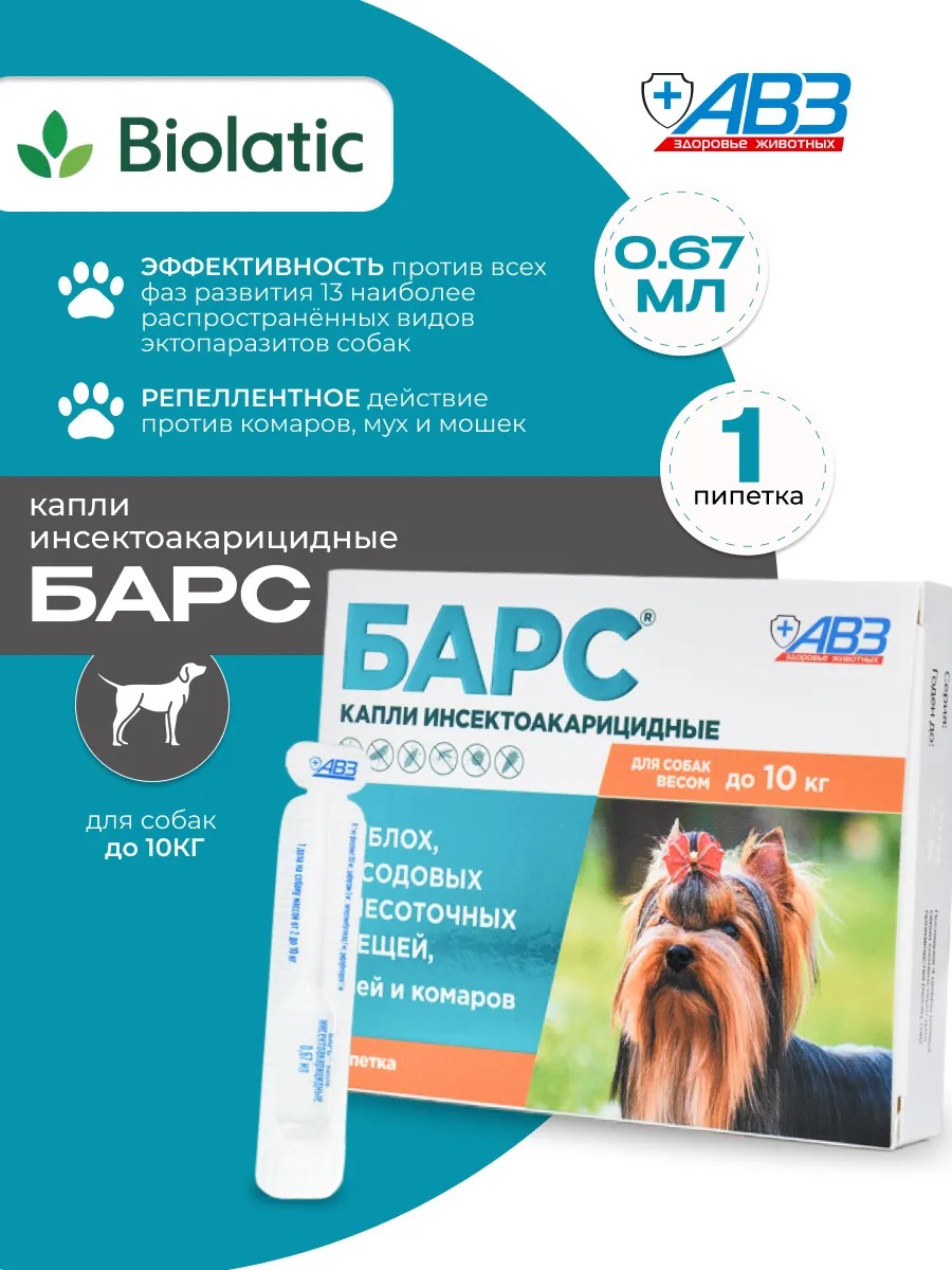 АВЗ Барс капли для собак до 10 кг 0,67 мл, 1 шт