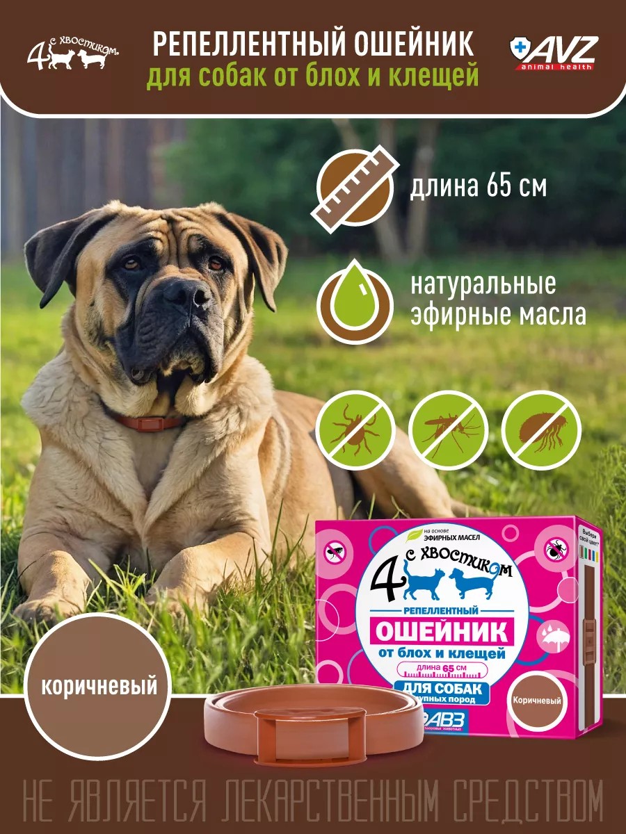 АВЗ Ошейник от блох и клещей 65см коричневый