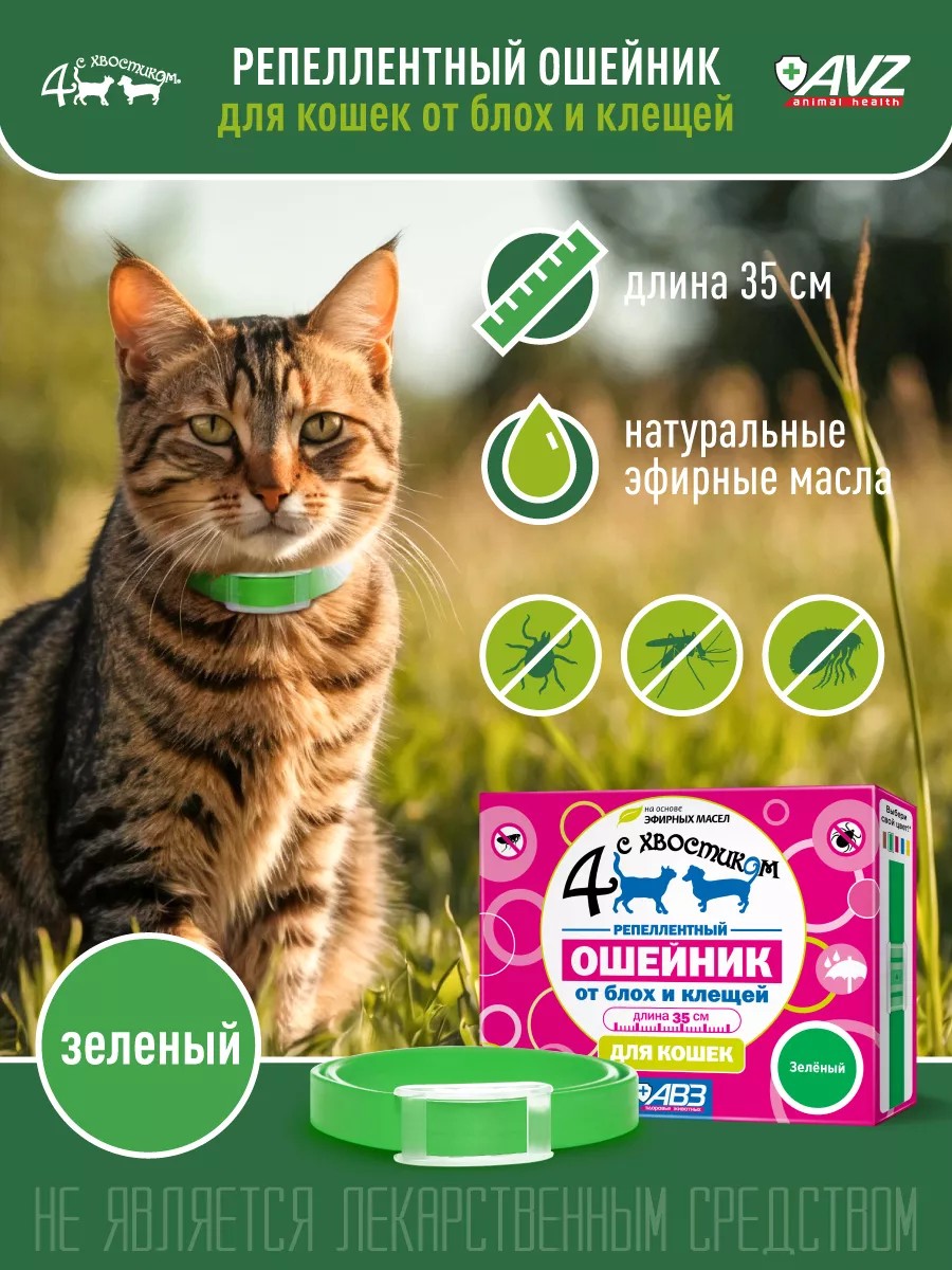 Ошейник для кошек от блох и клещей - эффективный отпугиватель против паразитов , полностью безопасен для животного, не имеет в своем составе вредных веществ, обладает приятным запахом. Силиконовый ошейник репеллент от клещей для котят оснащен безопасной и удобной застежкой, позволяющей с легкостью отрегулировать любую его длину по шее животного. Антипаразитарный биоошейник водостойкий, его действие не прекращается даже после мытья и купания животного. Рекомендации: непрерывное применение биоошейника обеспечит эффективную защиту от насекомых до 3-х месяцев, а также защиту от клещей до 4 недель. Эфирные масла лаванды, цитронеллы, мяты перечной, герани обладают репеллентным действием в отношении иксодовых и чесоточных клещей, блох, вшей и власоедов, паразитирующих у собак. Входящая в состав ошейника композиция эфирных масел, постепенно выделяясь с поверхности полимерной ленты, не всасывается в системный кровоток, накапливается в сальных железах тела животного, оказывая отпугивающее действие на насекомых и клещей. Ошейник Четыре с Хвостиком хорошо переносится кошками разных пород и возрастов. Подходит для больных и ослабленных животных, а также для беременных и кормящих самок. Лечебный ошейник ремешок подойдет для кошек крупных, мелких и средних пород . Этот ошейник является отличным выбором для тех, кто хочет обеспечить максимальную защиту своего питомца от блох и клещей, особенно во время прогулок на природе. Он также может использоваться как профилактическое средство, чтобы предотвратить появление паразитов на вашем питомце. БИО Ошейник от блох и клещей - эффективный отпугиватель против паразитов , полностью безопасен для животного, не имеет в своем составе вредных веществ, обладает приятным запахом. Ошейник репеллент от клещей для кошек оснащен удобной застежкой, позволяющей отрегулировать любую его длину по шее животного. Антипаразитарный биоошейник водостойкий, его действие не прекращается даже после мытья и купания питомца.