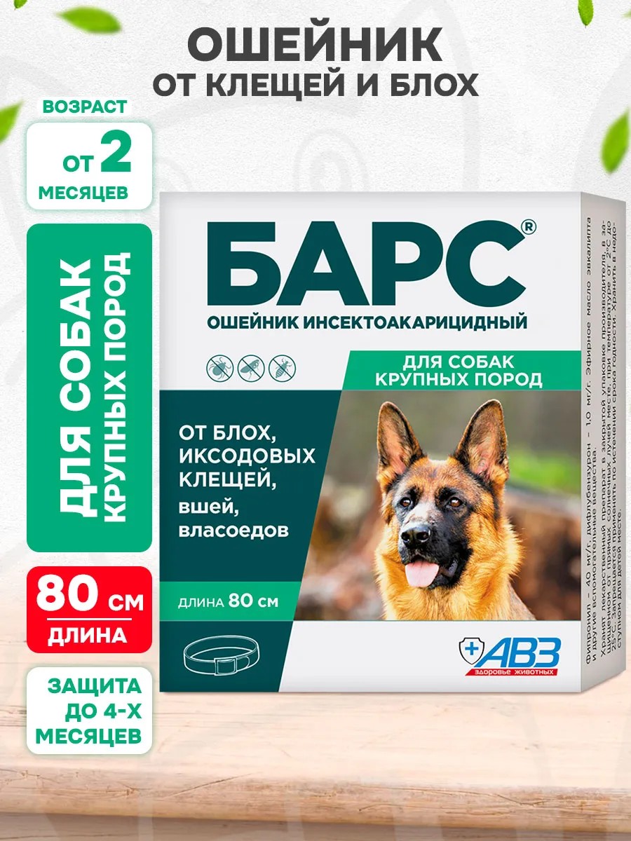 АВЗ Ошейник от клещей и блох для крупных собак и щенков 80 см