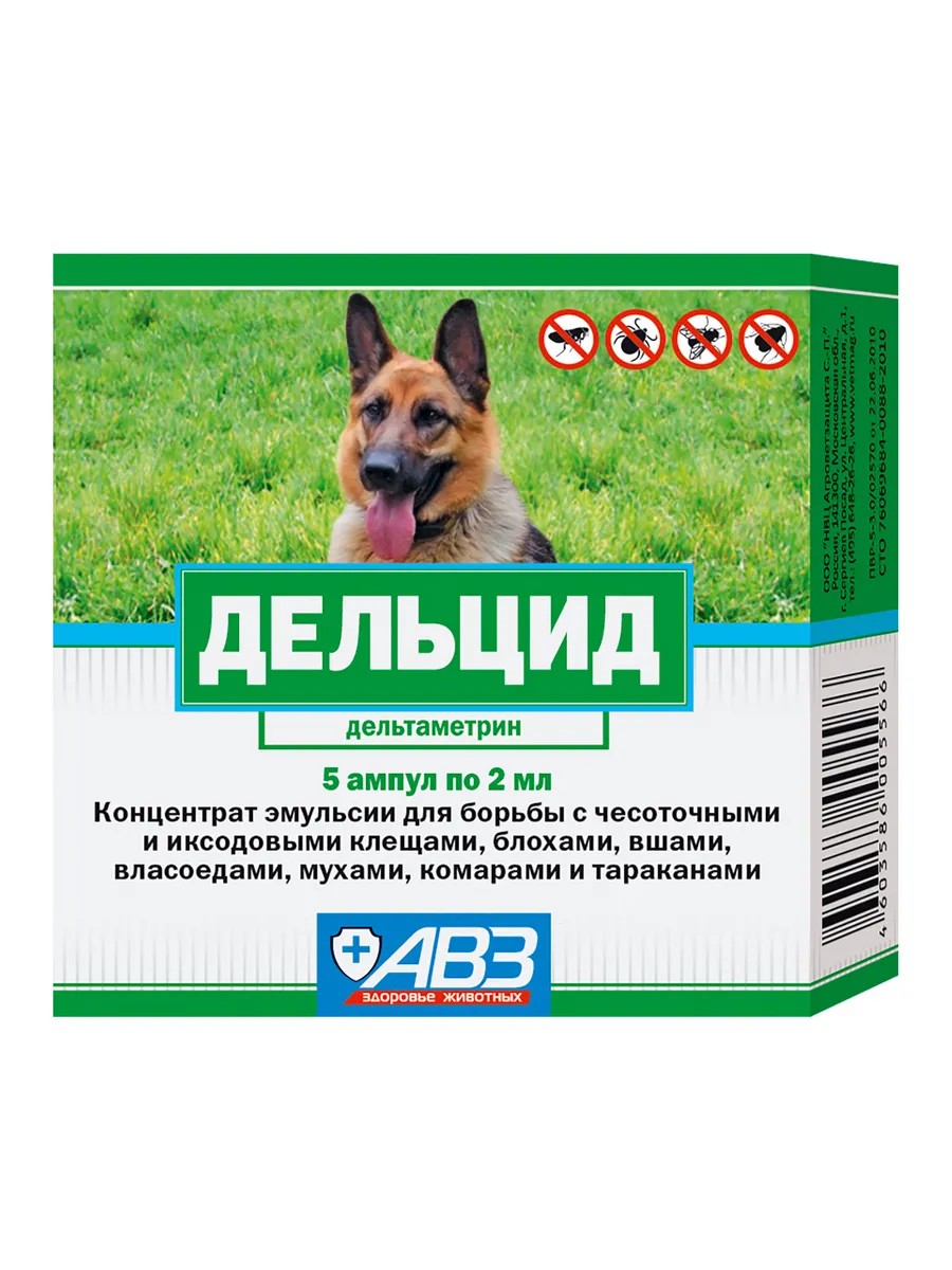 | Полное наименование товара | Дельцид раствор обработка кроликов и собак от эктопаразитов: против блох, клещей, вшей, власоедов, 5 ампул по 2 мл |