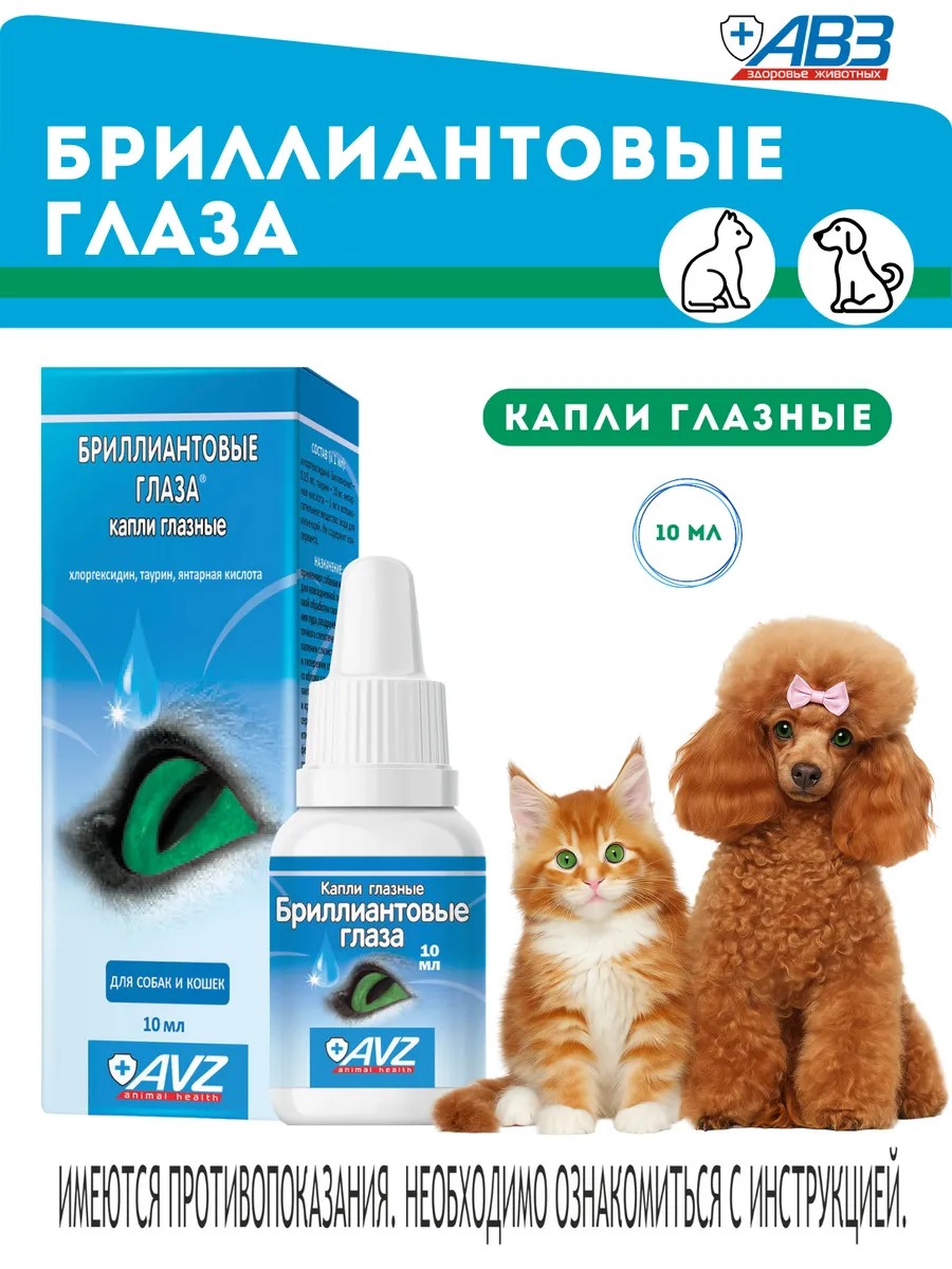 АВЗ Бриллиантовые глаза капли для собак и кошек 10 мл
