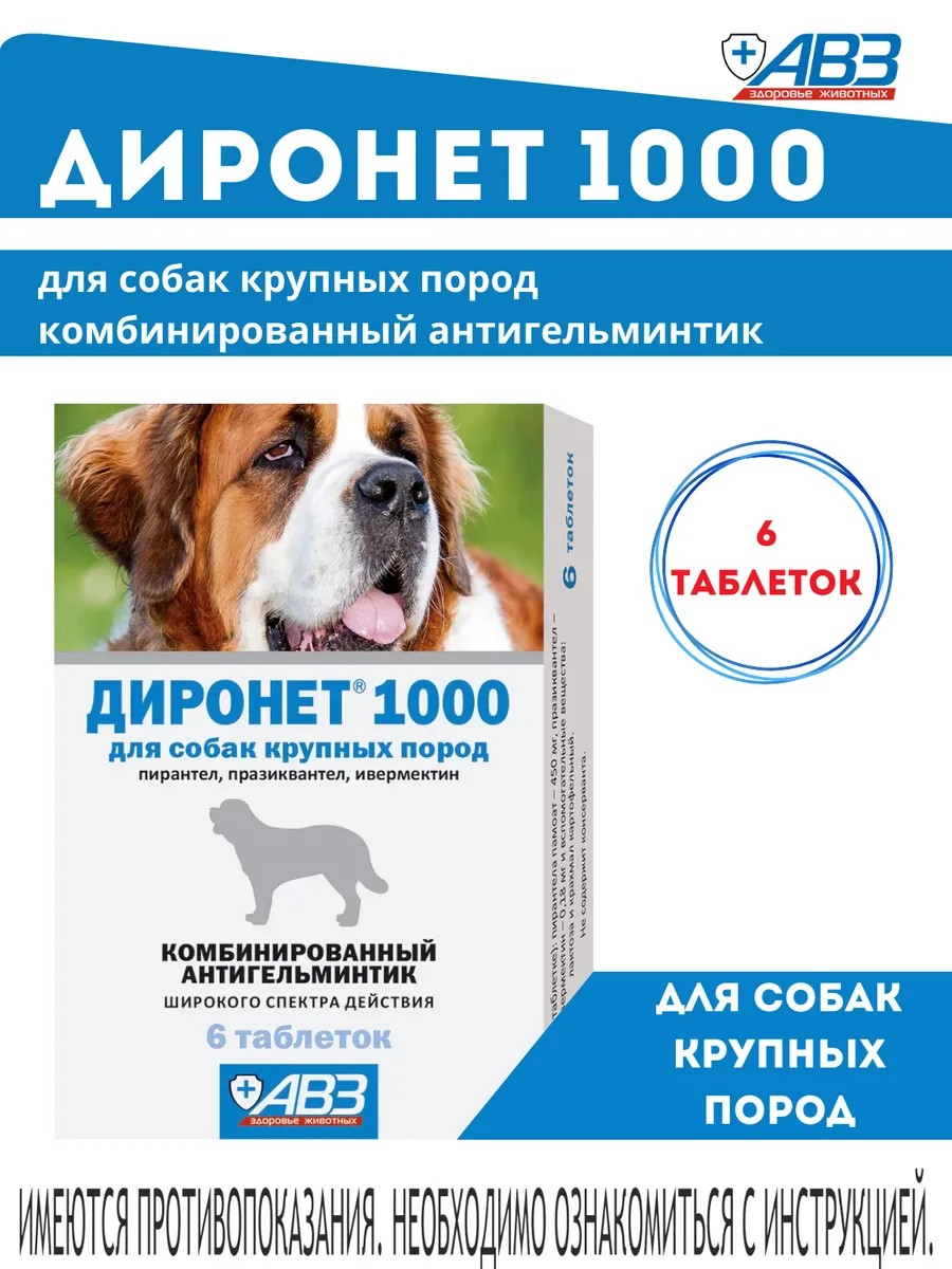 АВЗ Диронет 1000 таблетки для собак от глистов 6 таблеток