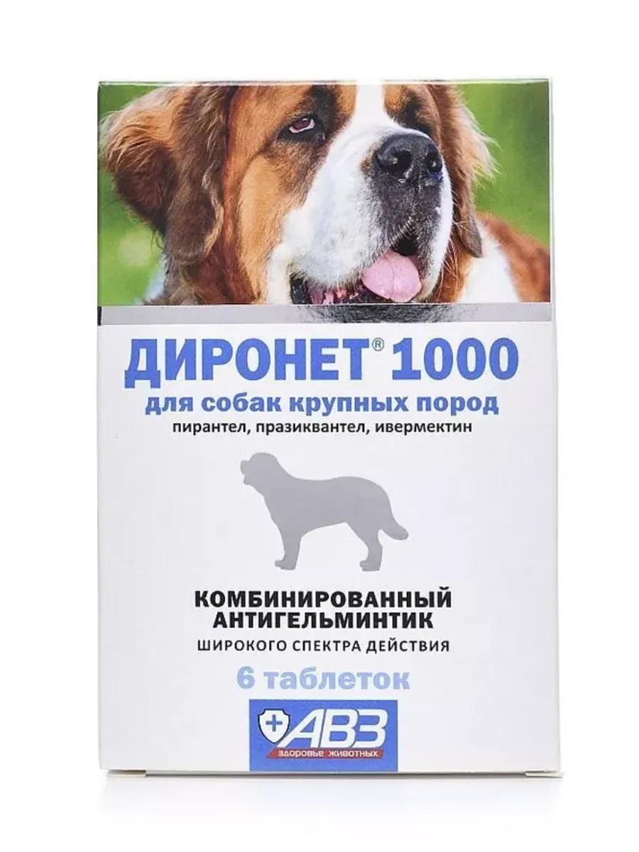 АВЗ Таблетки Диронет 1000 для крупных пород от глистов, 6таб