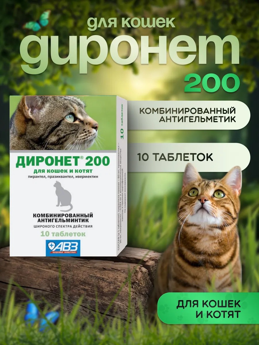 АВЗ Диронет 200 антигельминтик для кошек 10 таблеток