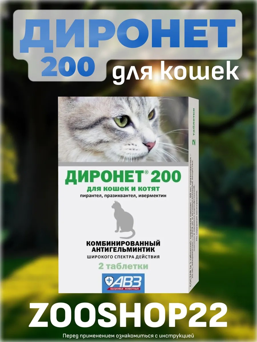 | Full name | Dironet 200 tablets for worms for cats, male cats, and kittens: against round and tapeworms, for deworming, for helminthiasis, 2 tablets |