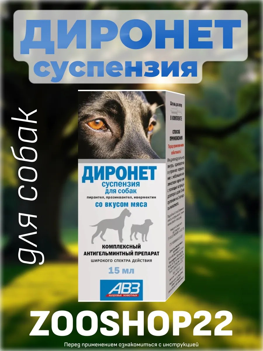 АВЗ Диронет суспензия от глистов для собак, 15 мл