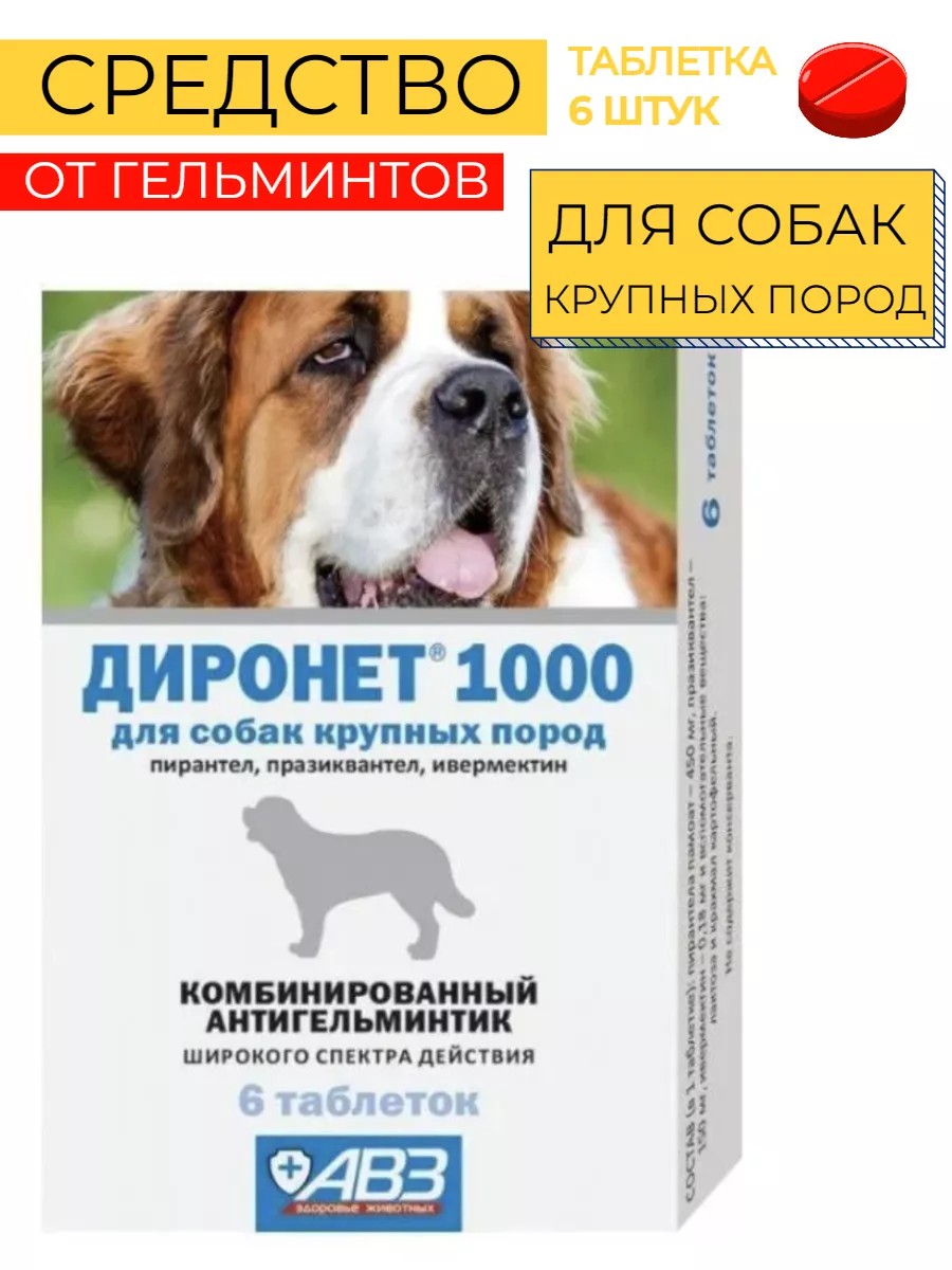АВЗ Таблетки для собак от гельминтов Диронет 1000
