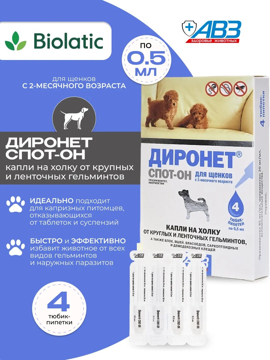 АВЗ Диронет Спот-Он капли на холку для щенков, 0,5 мл 4пип