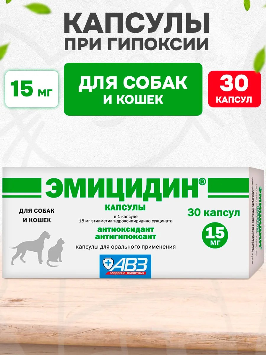 АВЗ Эмицидин 15% капсулы при гипоксии для собак и кошек 30 таб
