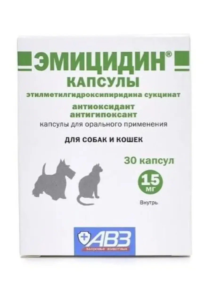 АВЗ Эмицидин 15 мг для собак и кошек, антиоксидантный 30 капсул