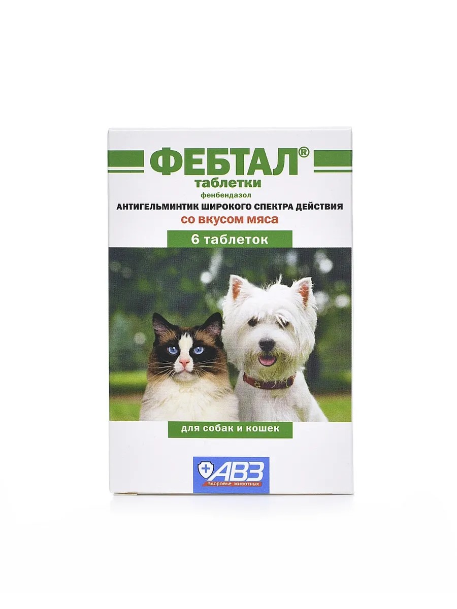 АВЗ Фебтал против гельминтов для кошек и собак 6 таблеток