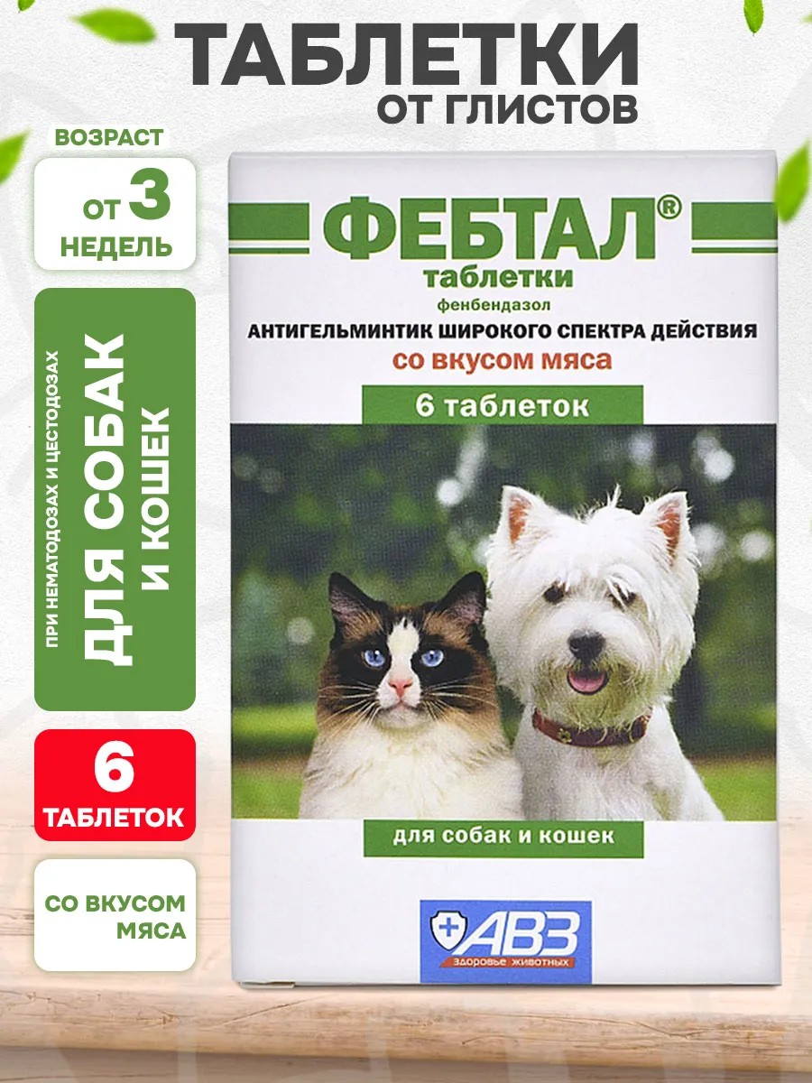 АВЗ Фебтал таблетки от глистов для собак и кошек 6 таб