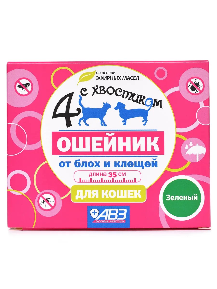 АВЗ Ошейник Четыре с хвостиком для кошек, 35см (зелёный)