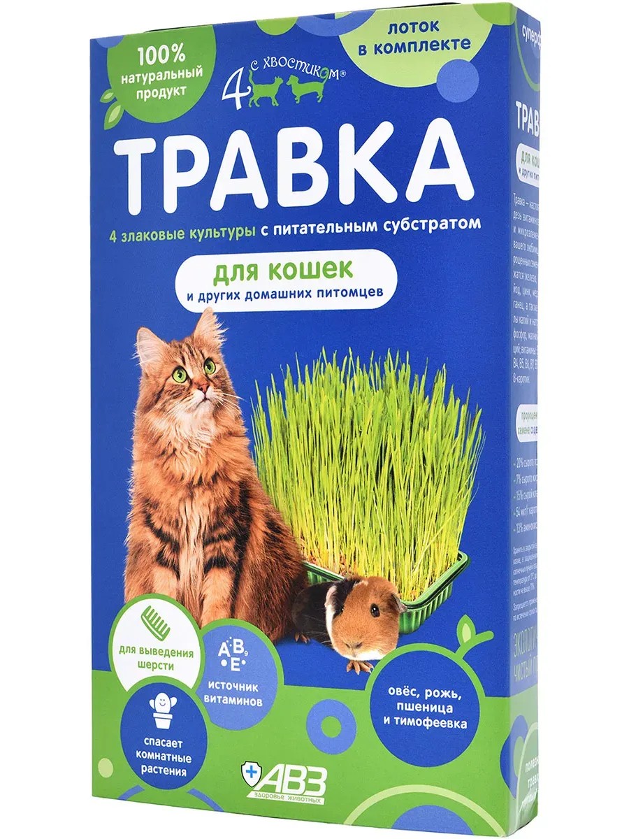 | Комплектация | 4 С Хвостиком травка для животных всех пород всех возрастов против шлаков и токсинов лоток 80 гр |