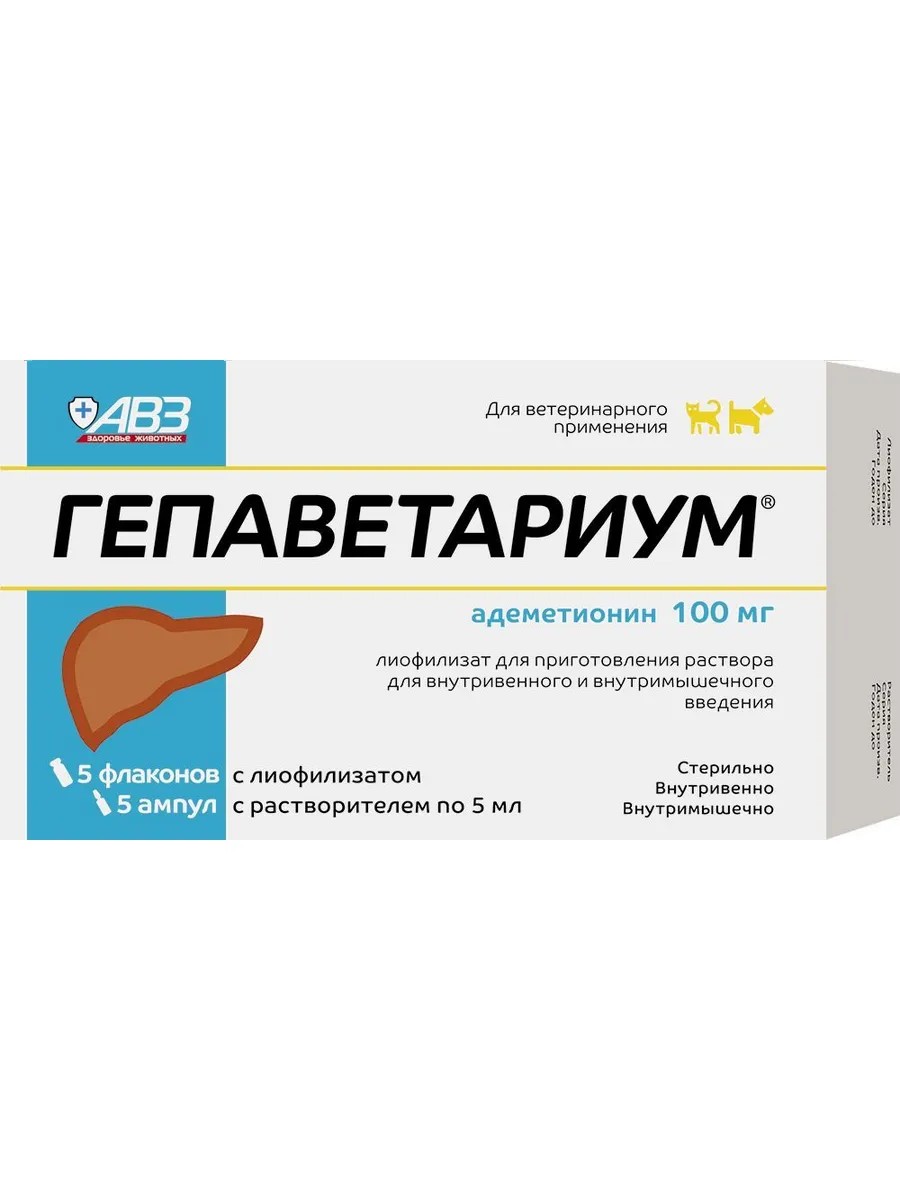 АВЗ ГЕПАВЕТАРИУМ 100мг гепатопротектор для кошек и собак, 5амп