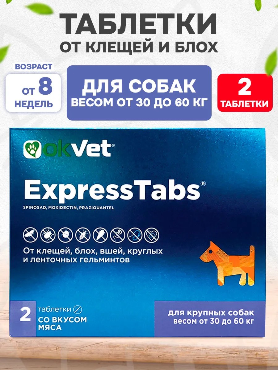 АВЗ Okvet ExpressTabs таблетки от паразитов собак 30-60 кг 2 таб