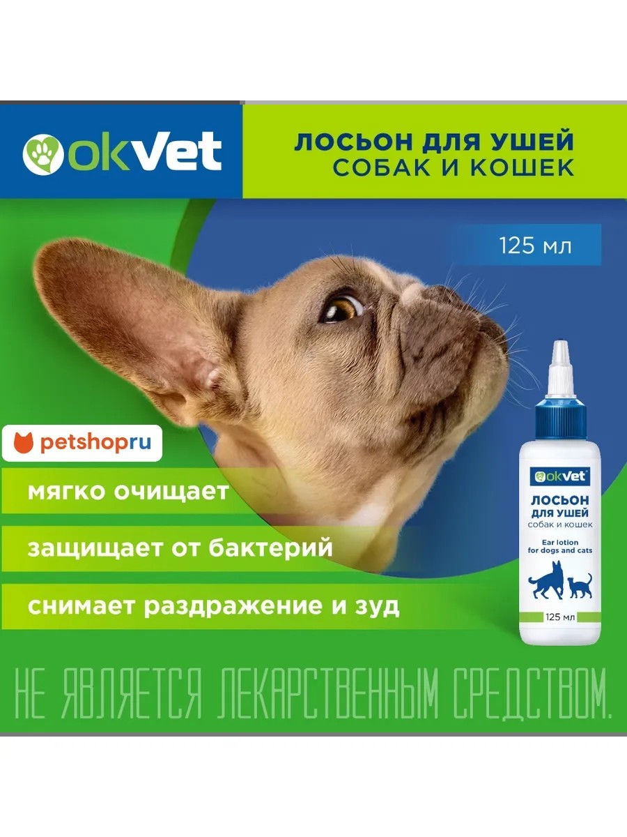 OkVet лосьон для ушей эффективно устраняет ушную серу, неприятный запах, загрязнения ушной раковины и слухового прохода. Лосьон применяют собакам, кошкам , щенкам и котятам для гигиенической обработки ушей, а также с целью удаления из ушной раковины и слухового прохода продуктов воспаления перед применением лекарственных препаратов для лечения отитов различной этиологии.