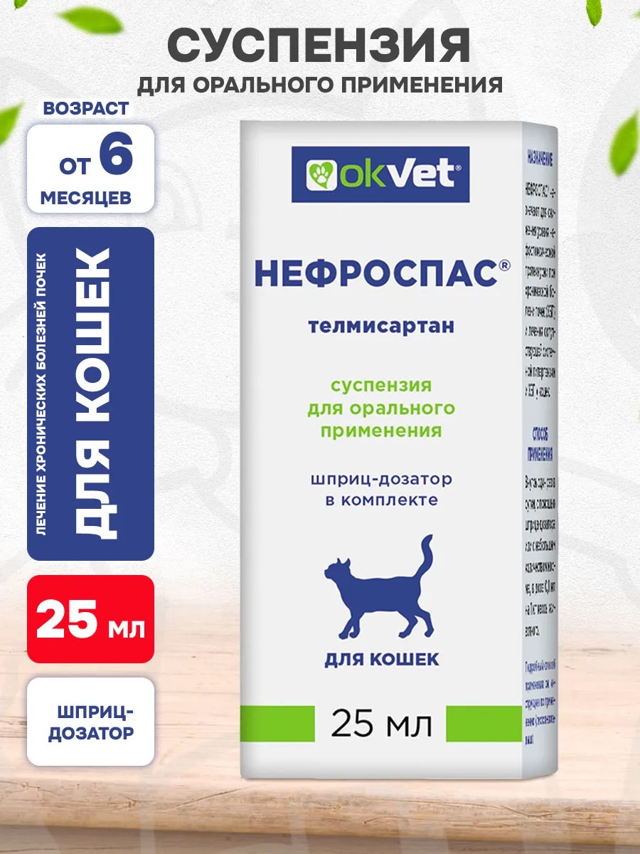| Комплектация | Суспензия для кошек для лечения хронической болезни почек и сопутствующей системной гипертензии; 25 мл раствор для перорального применения 1 флакон |