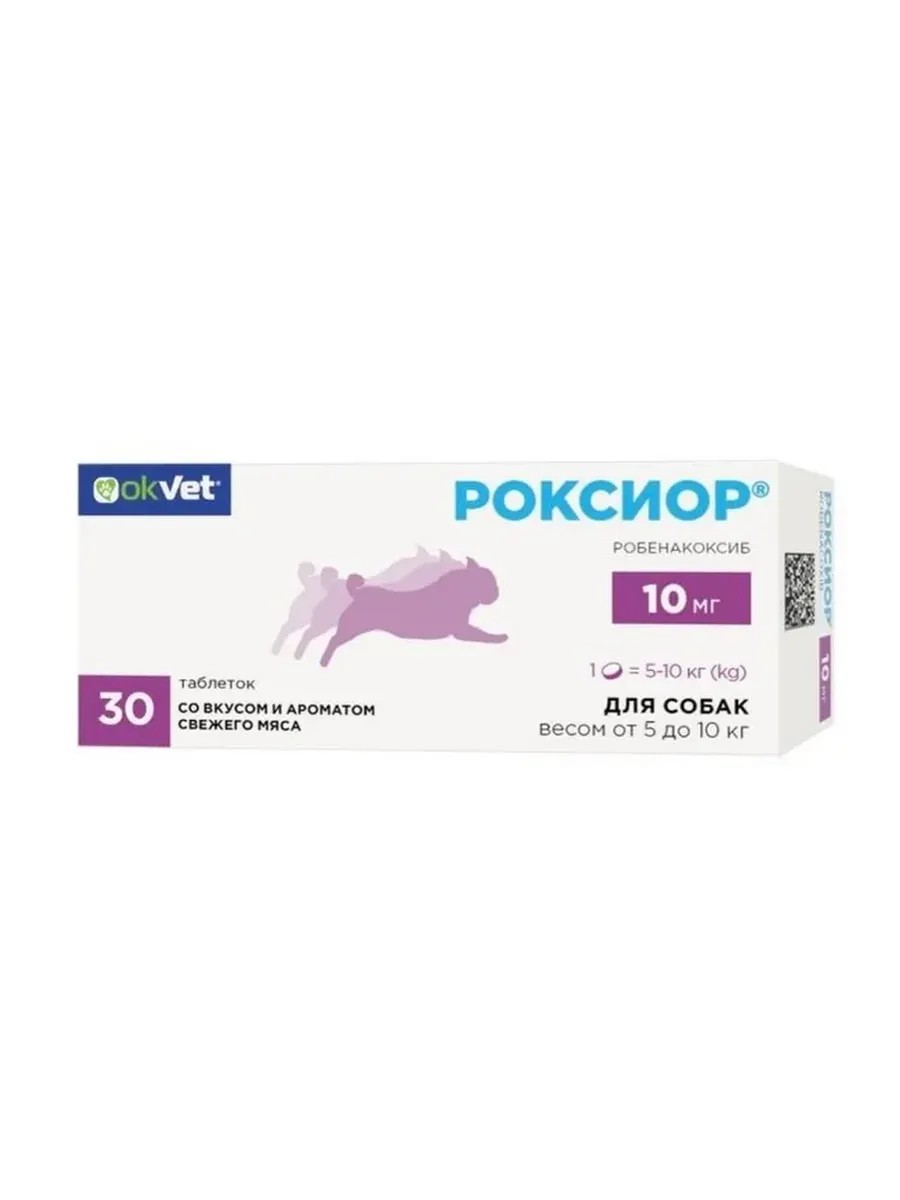 | Полное наименование товара | РОКСИОР 10 мг для собак весом от 5 до 10 кг, противовоспалительные таблетки, 30 табл. |