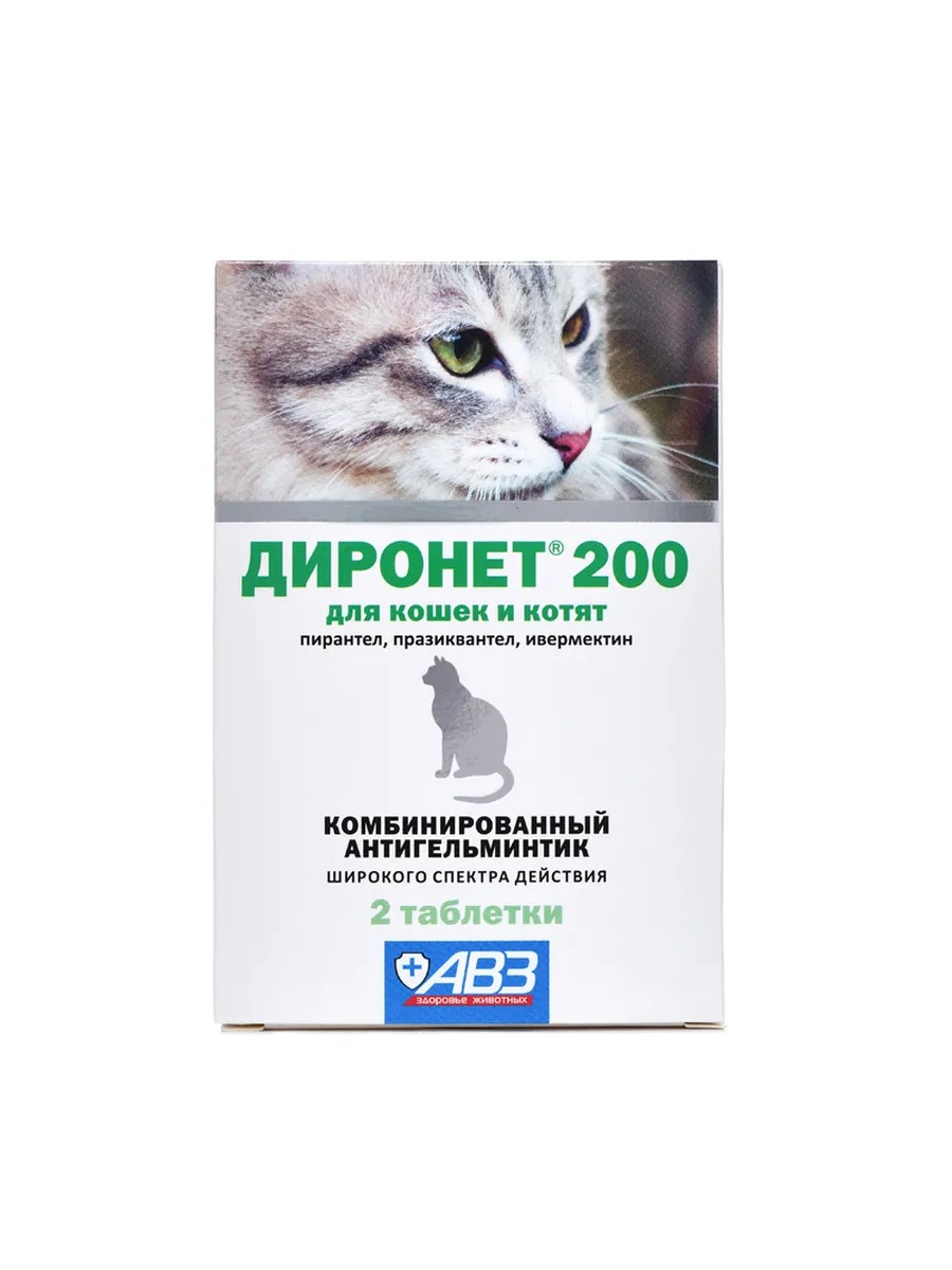 ДИРОНЕТ 200 предназначен для кошек, содержит в одной таблетке пирантела памоата 60 мг, празиквантела 20 мг и ивермектина 0,024 мг.